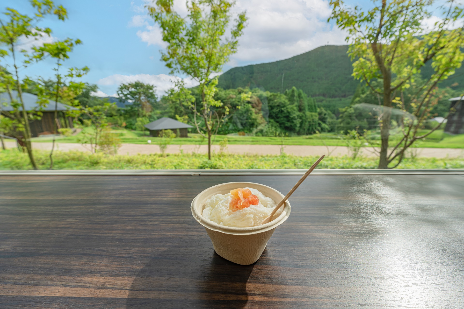 호시노 리조트 카이 유후인의 빙수, 우유 빙수 위에 달콤한 자몽이 올려져 있었습니다.