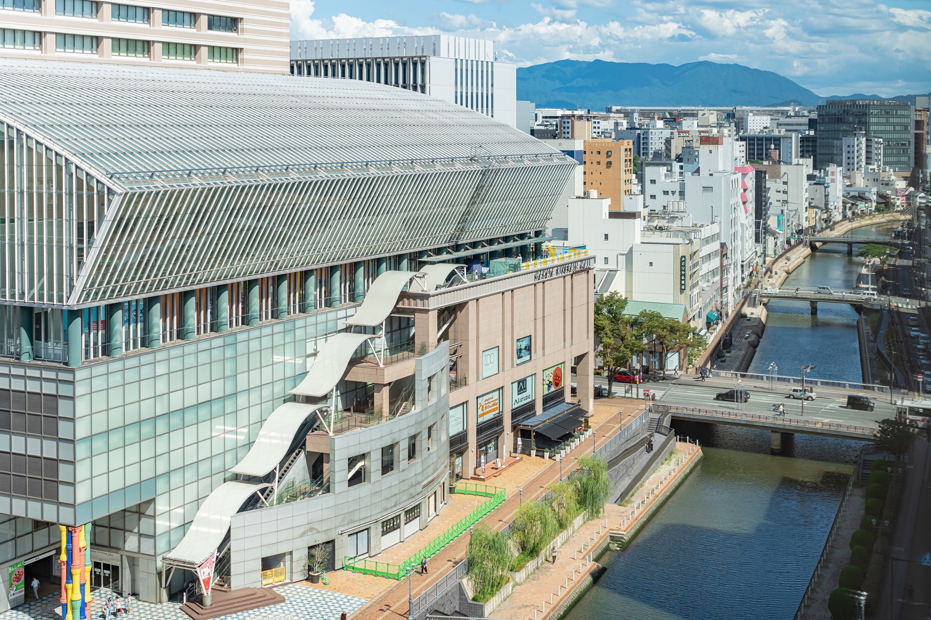 나카스강, 오쿠라 호텔, 하카타 리버레인 등의 시설이 보입니다.