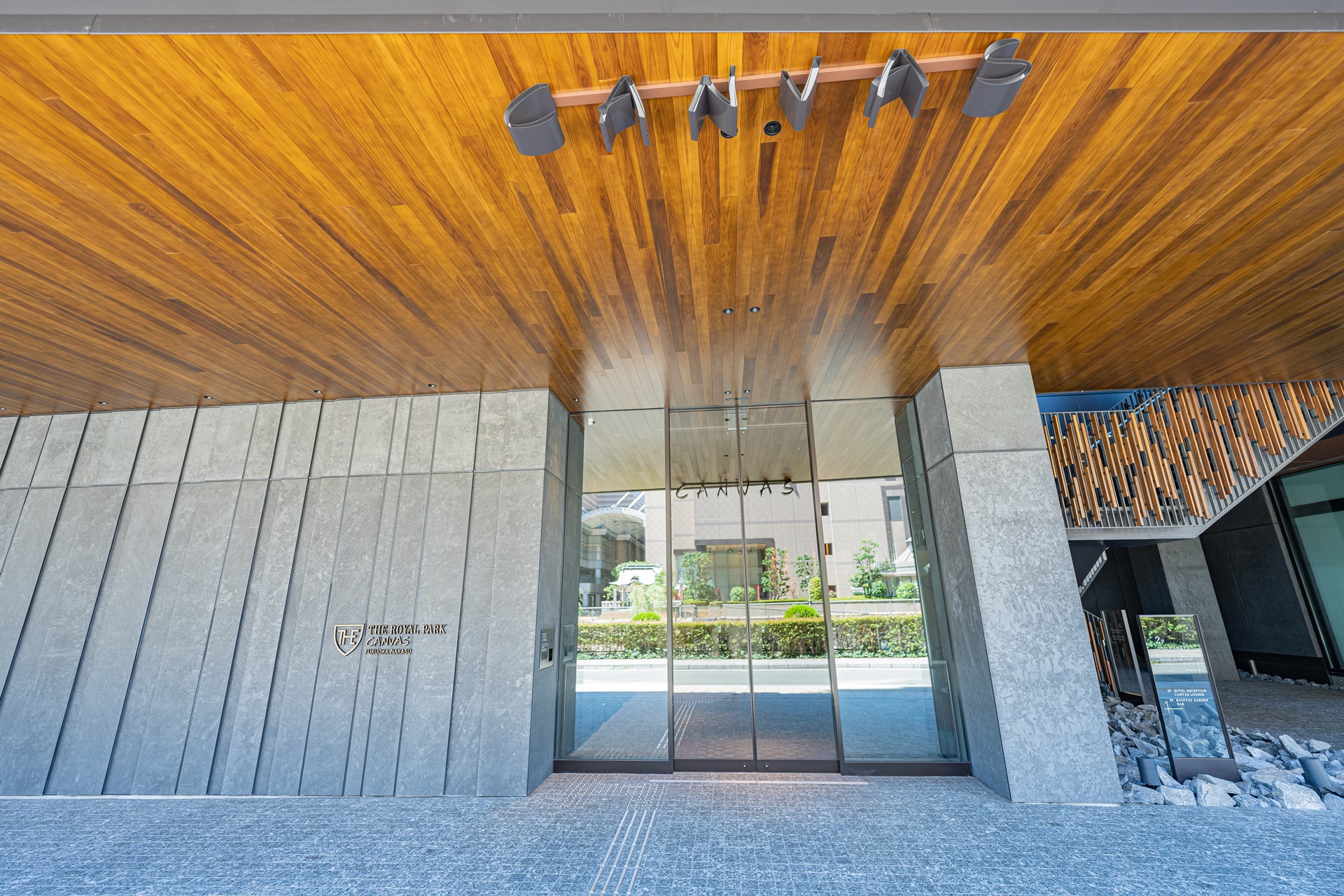 일본 호텔 브랜드 로열 파크 호텔 앤 리조트 컴퍼니의 후쿠오카 두 번째 호텔인 더 로얄 파크 캔버스 후쿠오카 나카스, 첫 호텔은 더 로얄 파크 호텔 후쿠오카로 이름이 다르고 나카스가 아닌 하카타이기 때문에 잘못 찾아가지 않도록 주의해야 합니다.