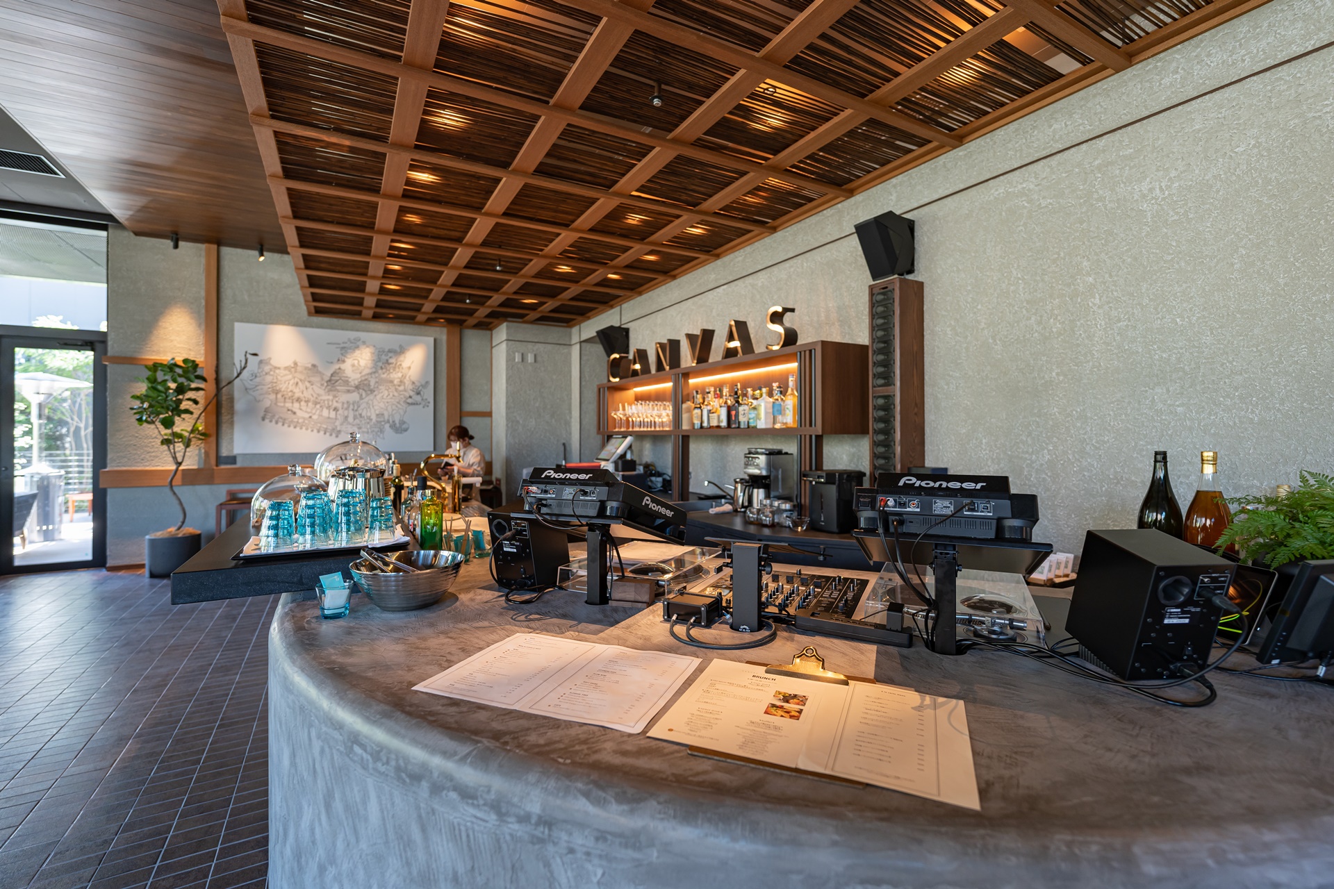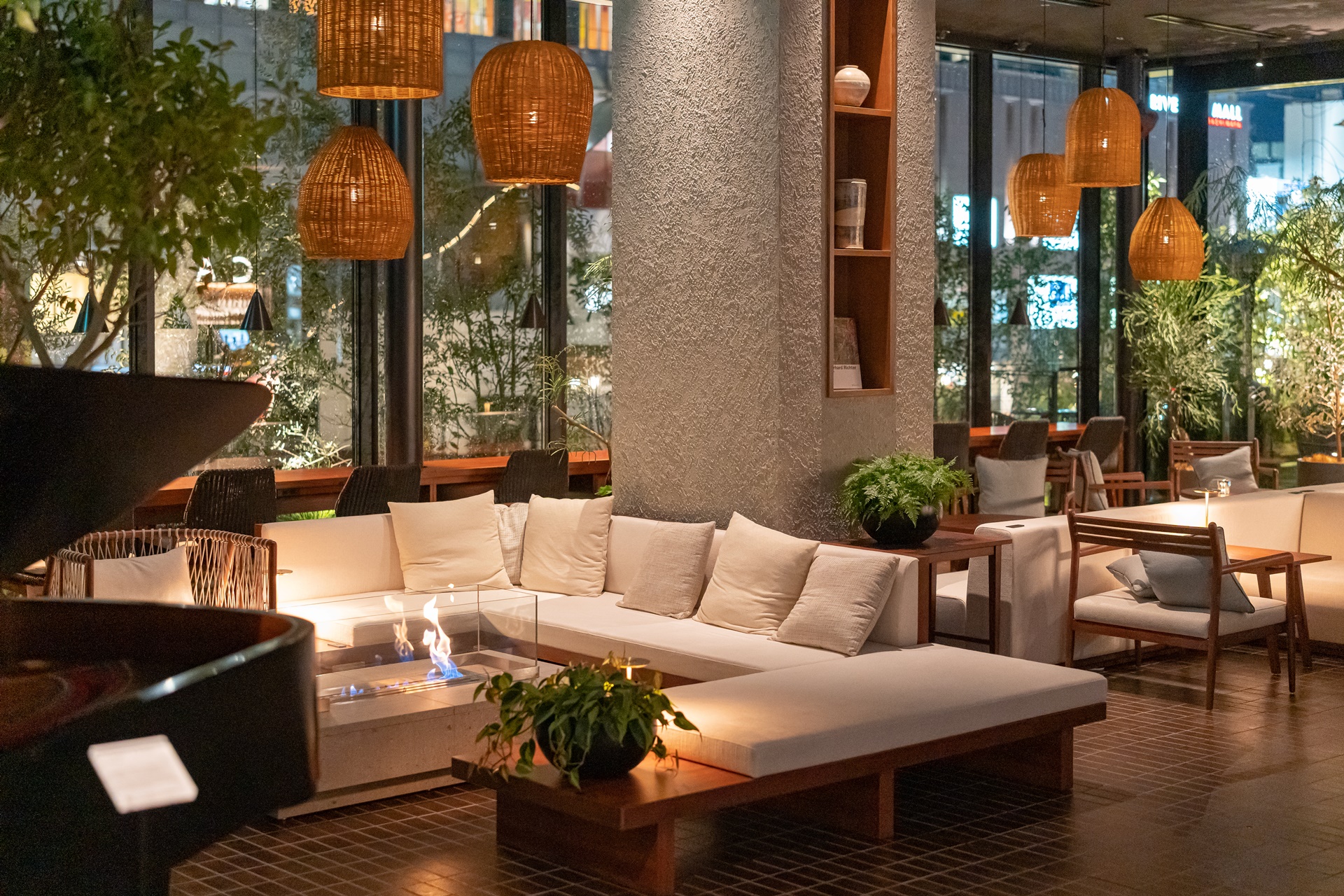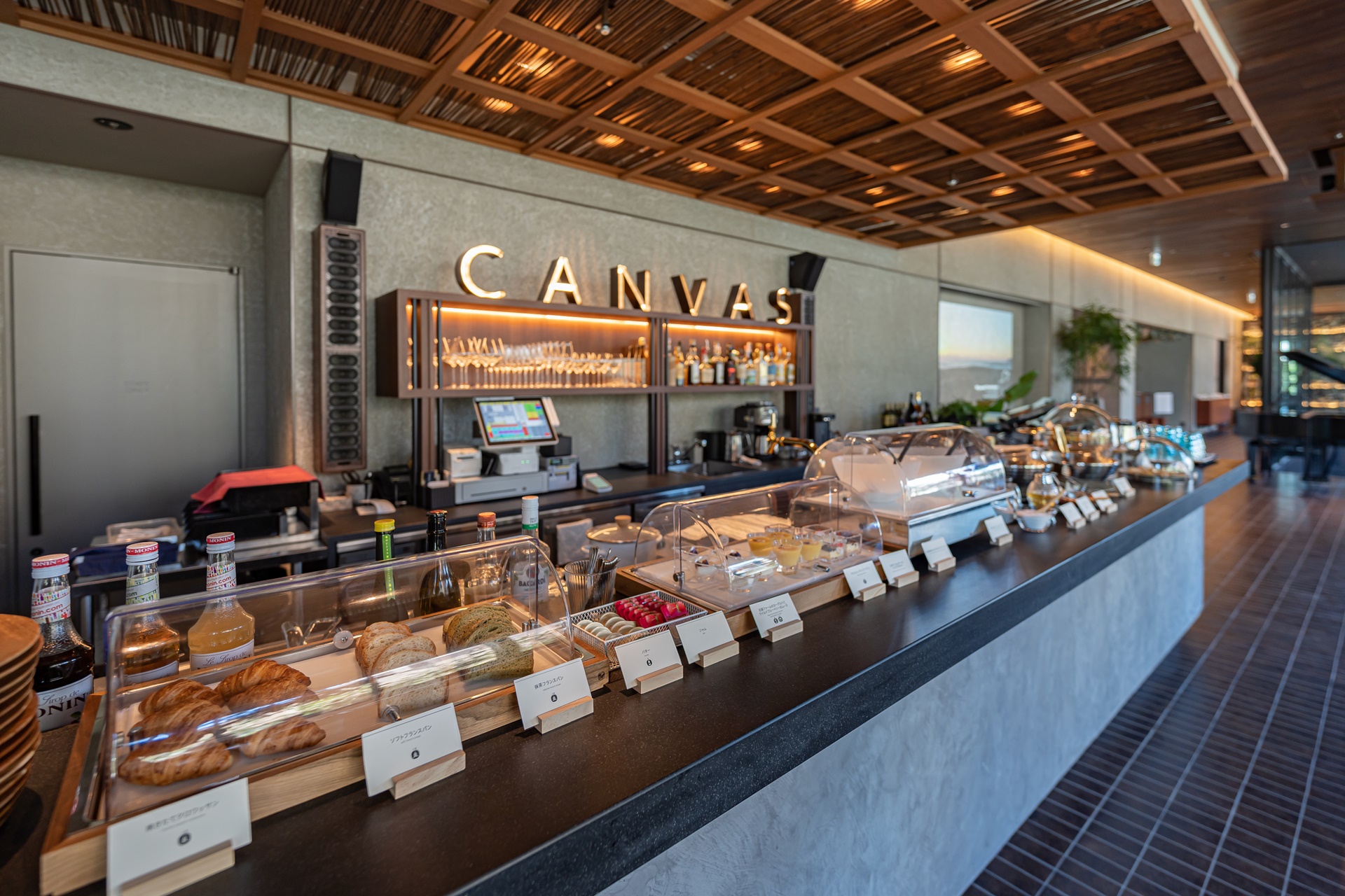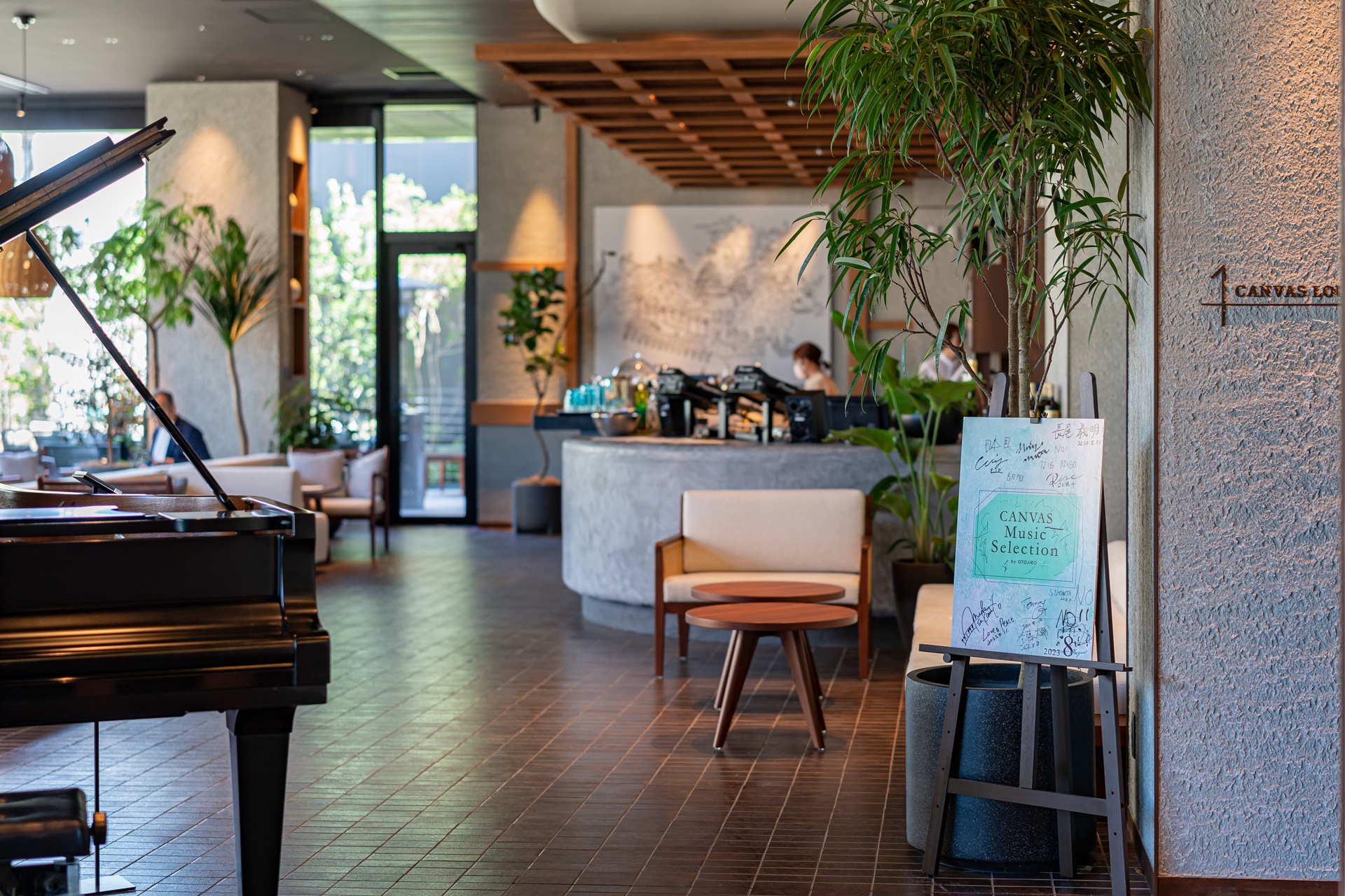 하카타 강이 내려다보이는 테라스가 딸린 캔버스 라운지(CANVAS Lounge)는 호텔 투숙객이나 현지 주민이 음악 이벤트를 즐기거나 편안히 앉은 채로 강변의 화려한 생활을 조망할 수 있는 공간을 제공합니다. 공간도 넉넉하고 소파 옆에 콘센트도 있어 여유롭게 시간을 보낼 수 있습니다.