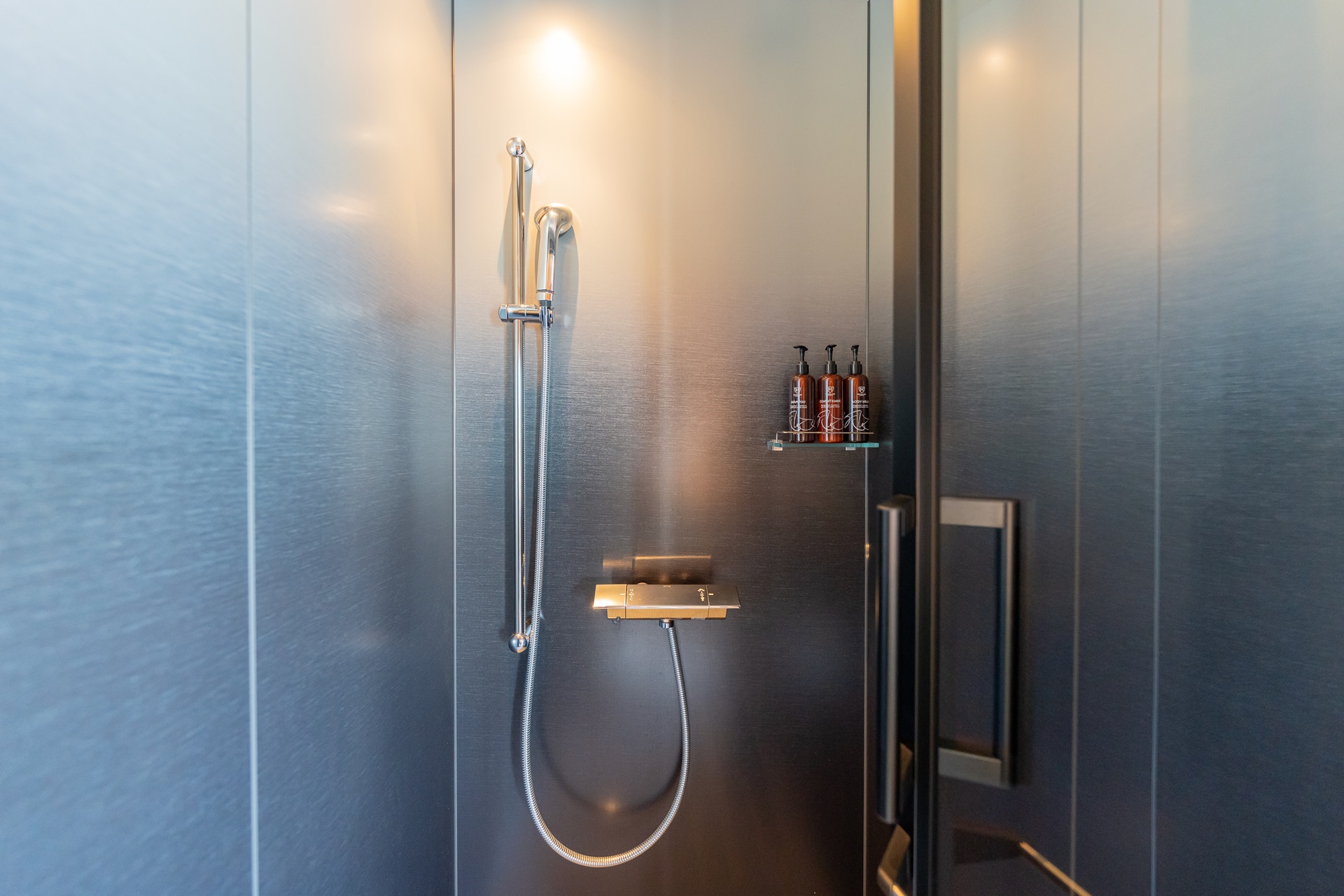 샤워 부스가 있는데 더 로얄 파크 캔버스 후쿠오카 나카스 호텔에는 대욕장이 있어 샤워 부스는 한번도 이용하지 않았습니다.