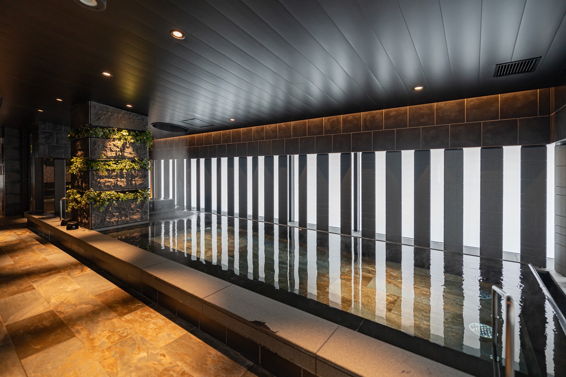 넓고 한편에서 미스트가 쉬지 않고 뿜어져 나오는 대욕장