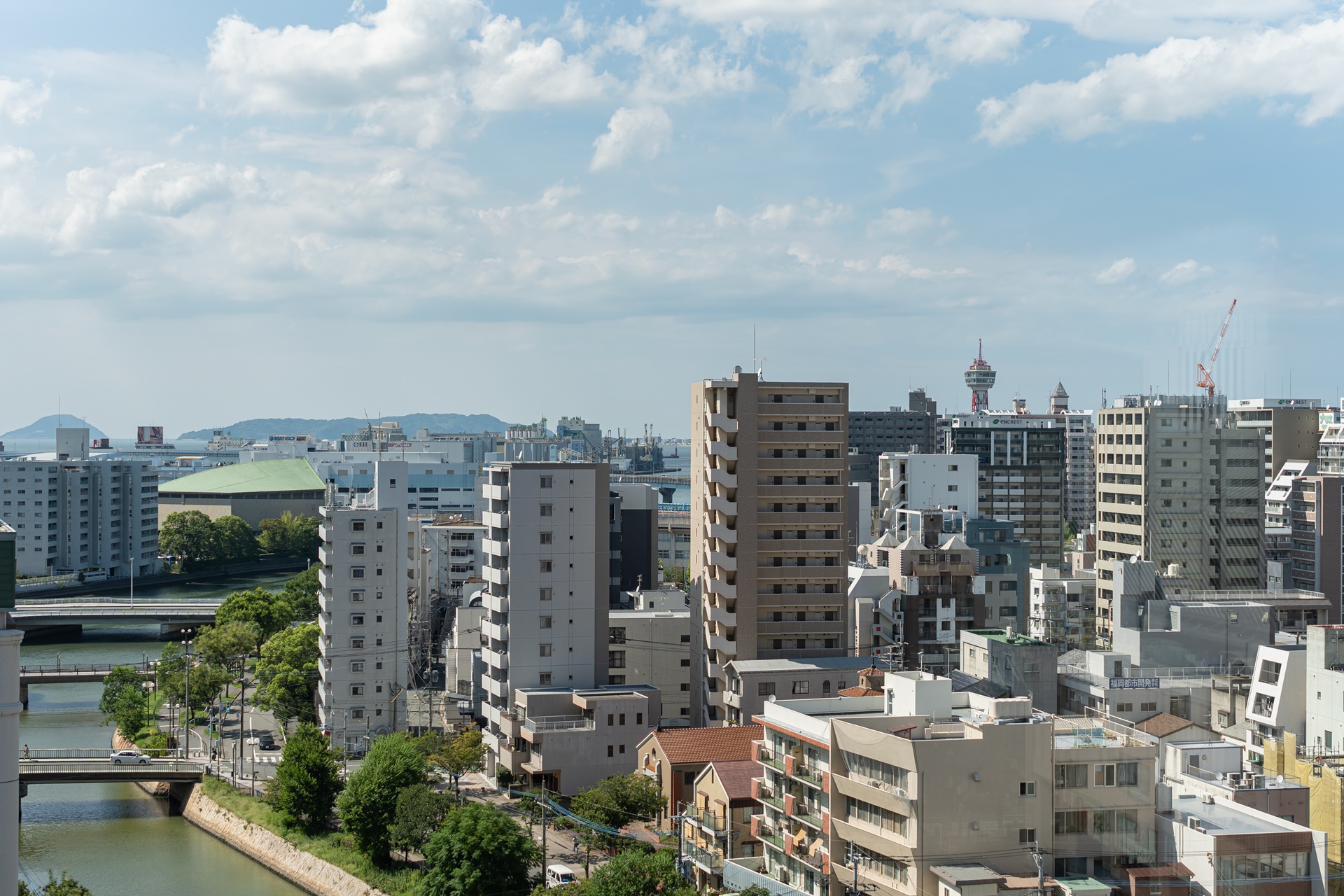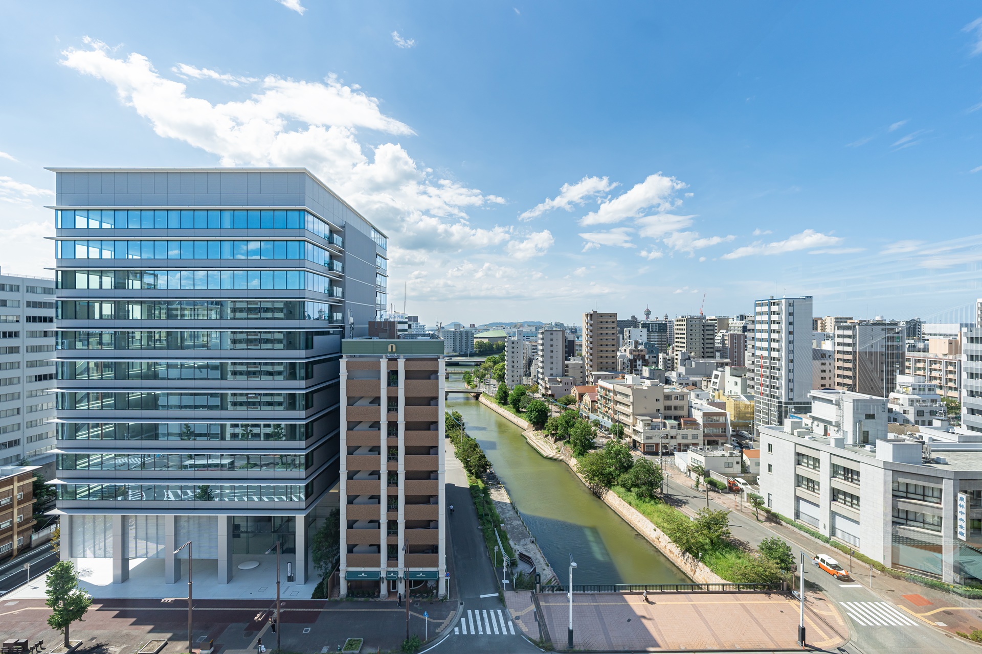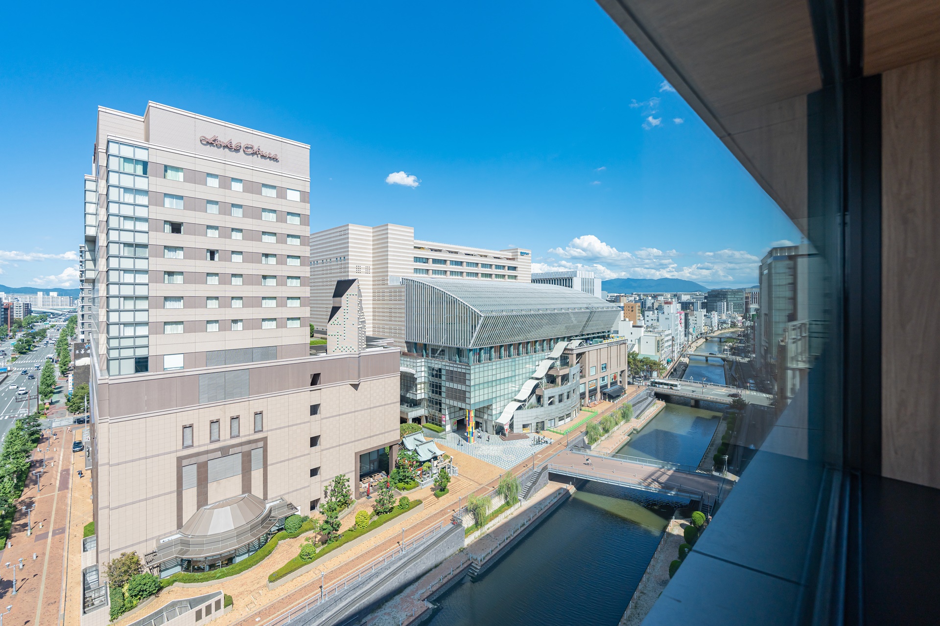 나카스강, 오쿠라 호텔, 하카타 리버레인 등의 시설이 보입니다.