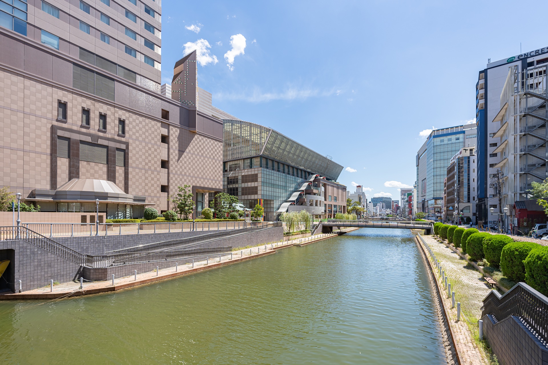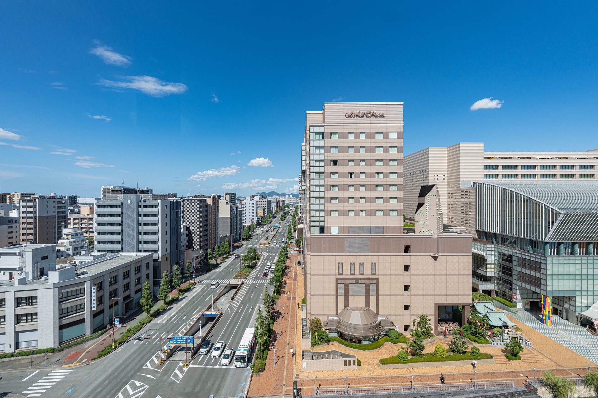 일본 호텔 브랜드 로열 파크 호텔 앤 리조트 컴퍼니의 후쿠오카 두 번째 호텔인 더 로얄 파크 캔버스 후쿠오카 나카스, 첫 호텔은 더 로얄 파크 호텔 후쿠오카로 이름이 다르고 나카스가 아닌 하카타이기 때문에 잘못 찾아가지 않도록 주의해야 합니다.