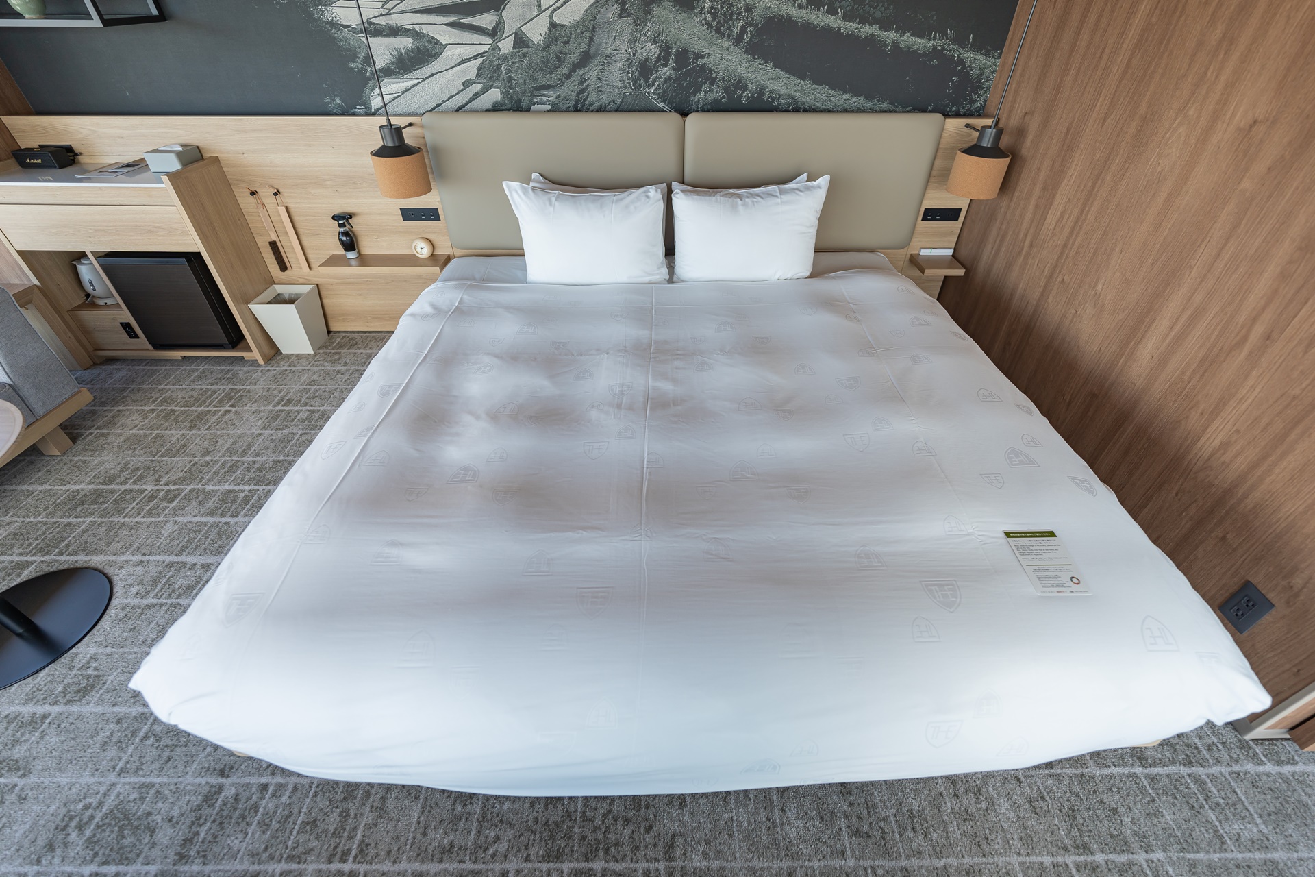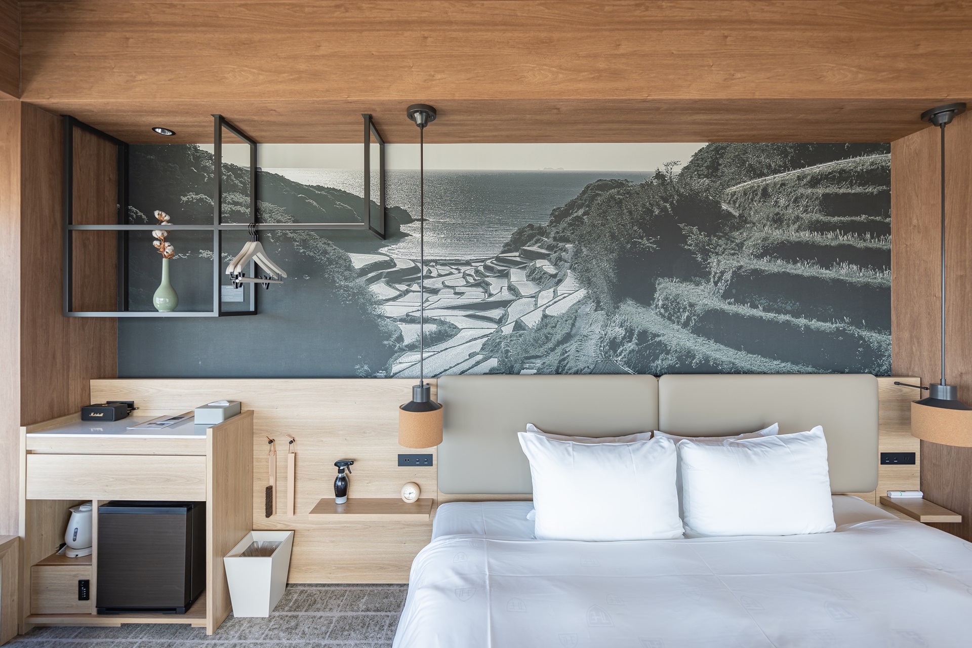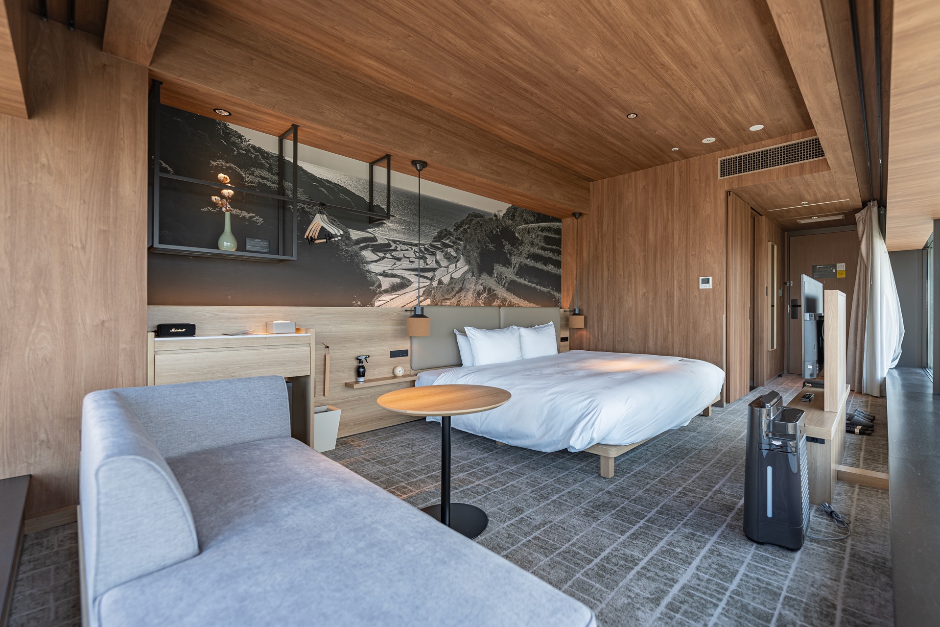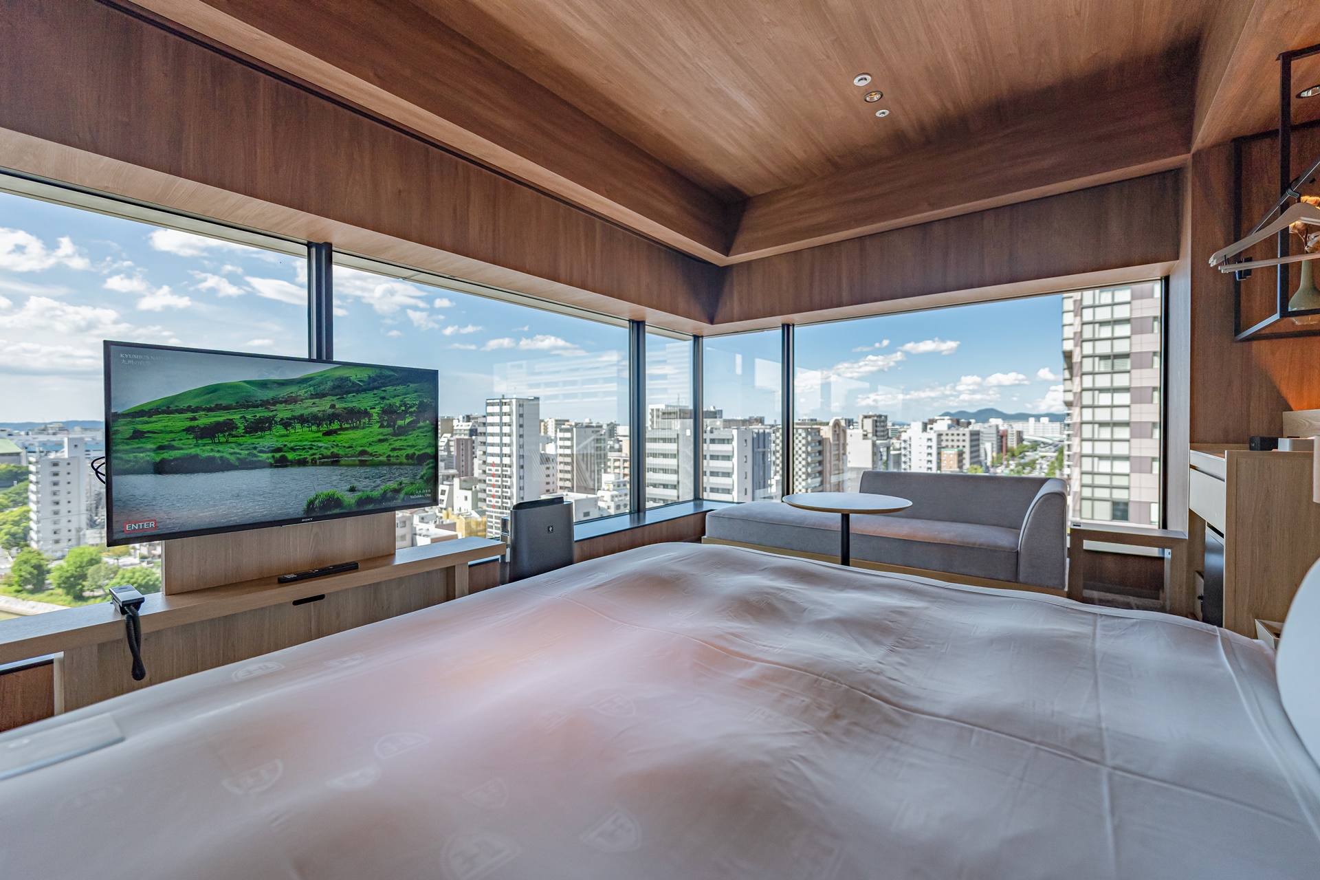 룸의 대부분은 규슈의 목제로 디자인 하였으며 깔끔하고 군더더기가 없어 더 넓어 보이는 것 같습니다.