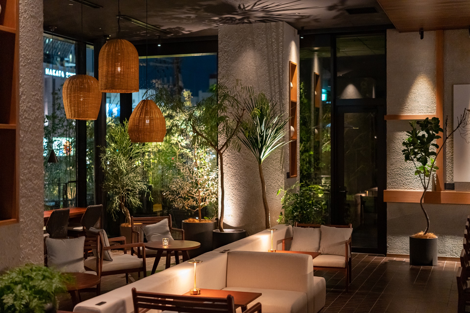 저녁이 되어 더 이뻐진 더 로얄 파크 캔버스 후쿠오카 나카스의 라운지