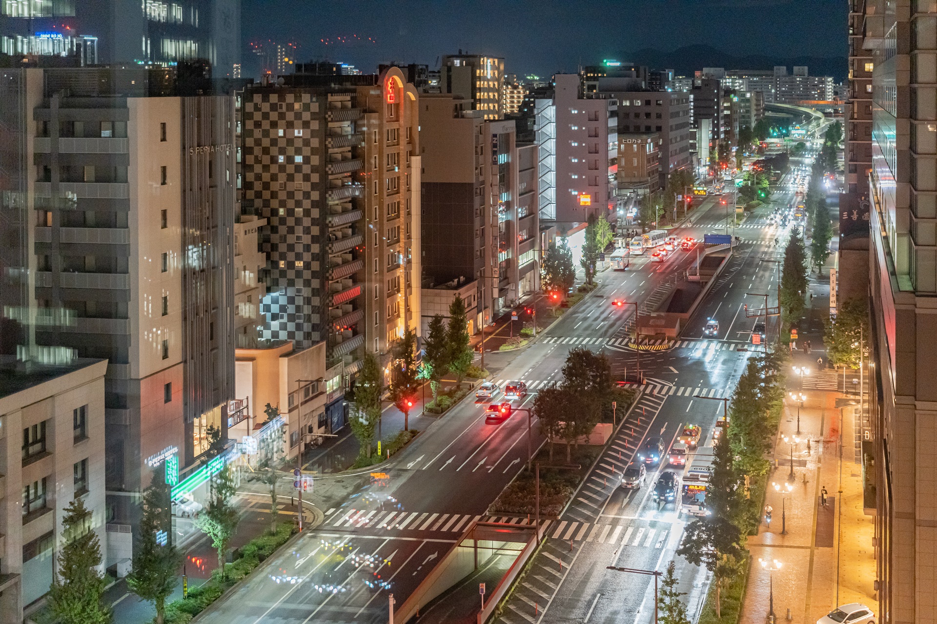후쿠오카의 밤이 빛나기 시작합니다.
