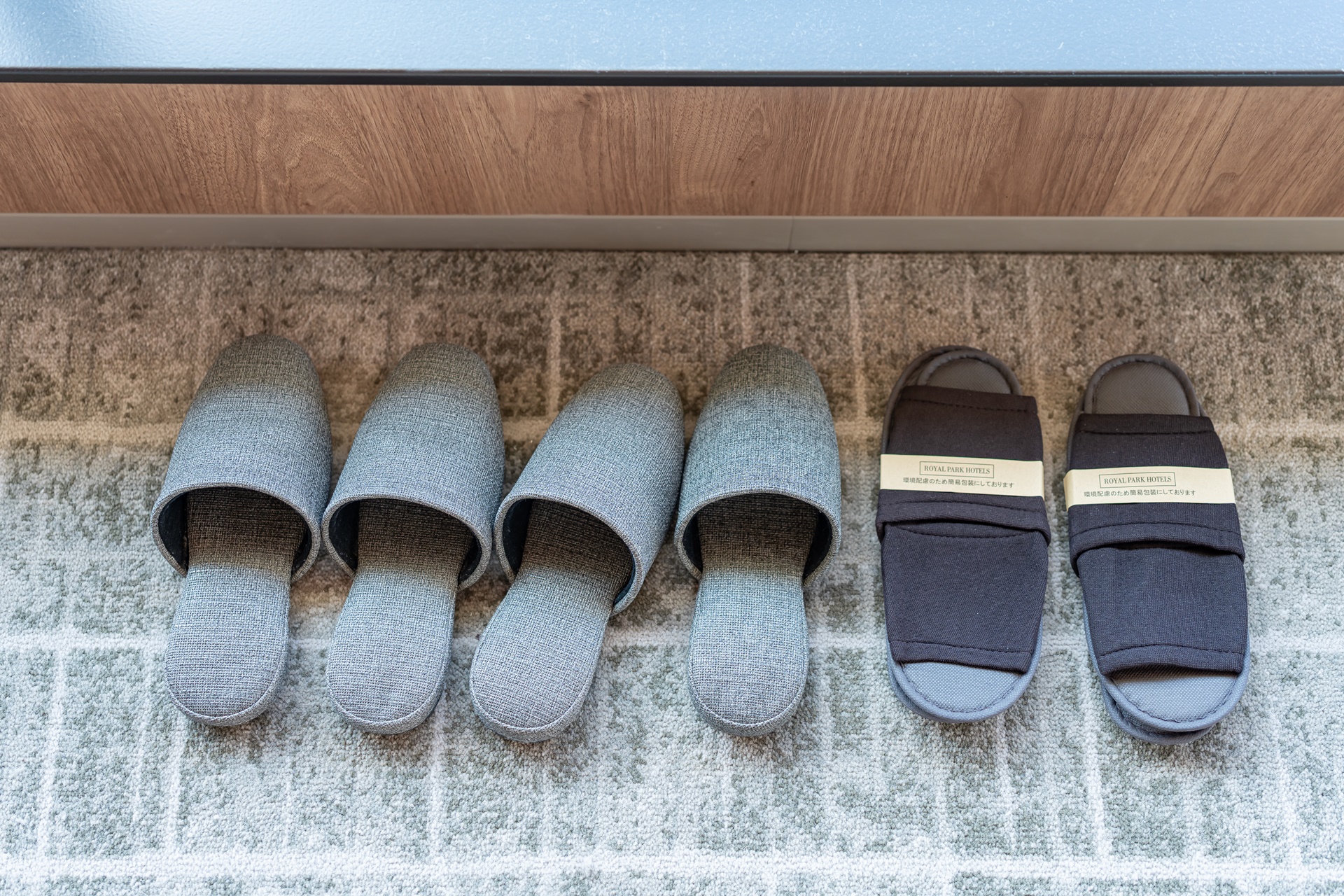 실외화는 대욕장이나 호텔 시설을 돌아나닐 때 편하게 신을 수 있습니다. (조식이 나오는 2층의 레스토랑에는 운동화나 구두를 신고 가야 합니다.)