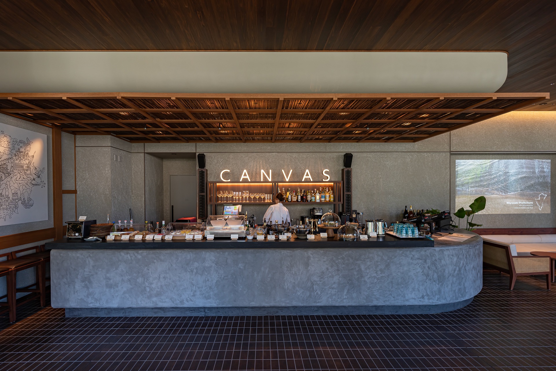 더 로얄 파크 브랜드의 캔버스 호텔 시리즈의 최신작인 더 로얄 파크 캔버스 후쿠오카 나카스 호텔은 재미를 찾고 지역적으로 생각하고 연결을 유지한다는 캔버스의 철학에 부합하는 다양한 공간을 선보이고 있습니다. 호텔 실내에는 규슈산 목재, 석재, 타일과 같은 자연 소재를 사용하고 있으며 객실과 라운지에 장식된 예술 작품은 규슈의 자연을 표현한 것으로 현지 예술가들이 작업하였습니다.