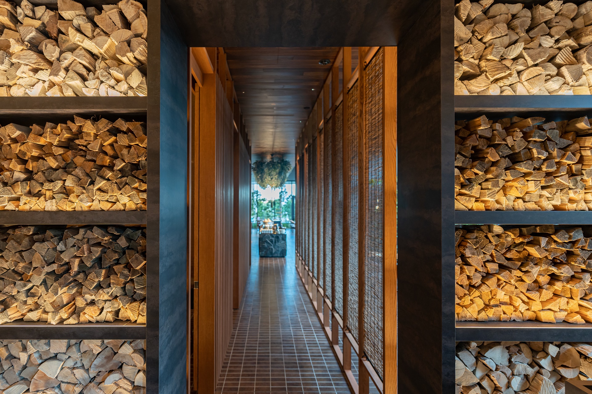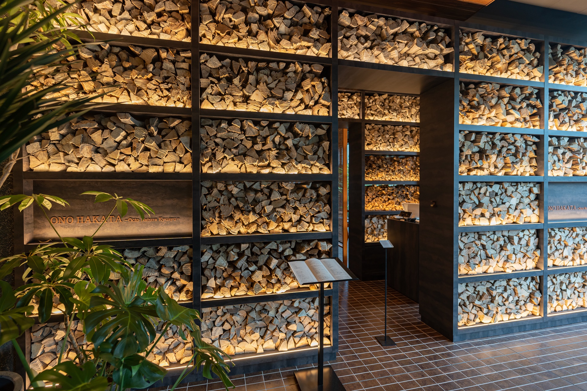 호텔 레스토랑인 오노 하타카 옥토 나투라 규슈(ONO HAKATA - Octo Natura Kyusyu)는 전통 장작불로 요리하는 지역 음식 전문점 입니다. 장작불로 요리하기 때문의 규슈의 나무 장작들을 이용하여 입구의 인테리어를 해 두었습니다.
