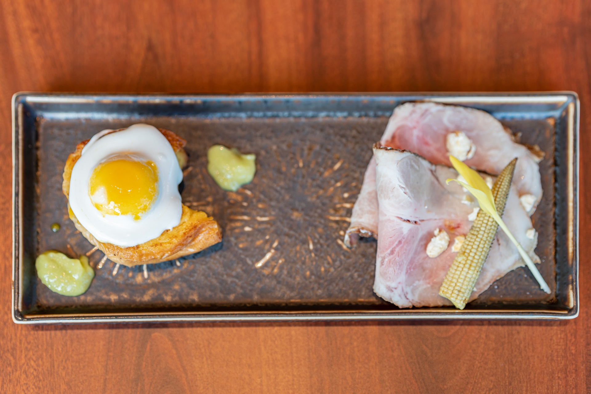 운젠 햄과 샐러드 안에 온천 계란이 숨어 있었던 메뉴