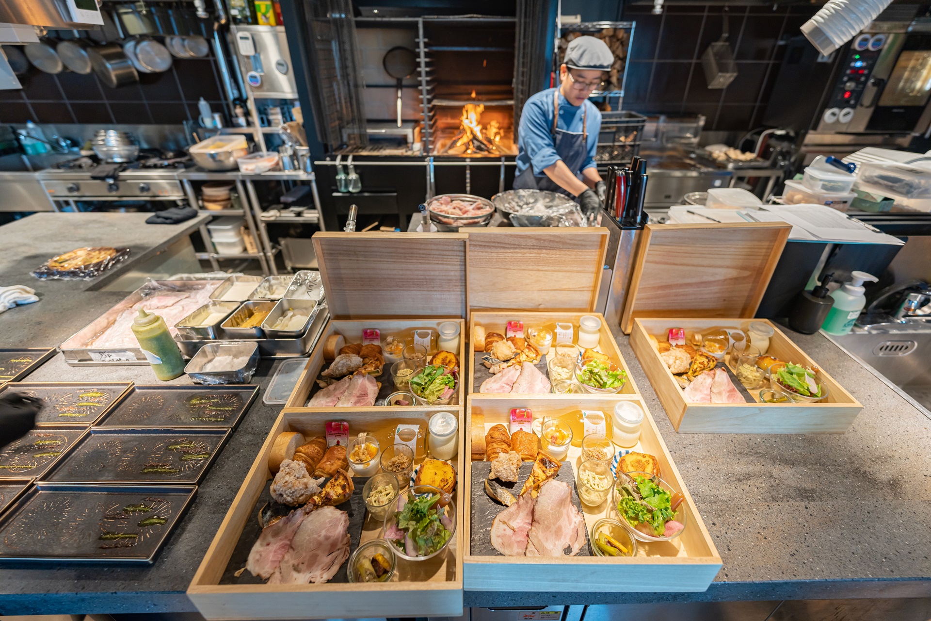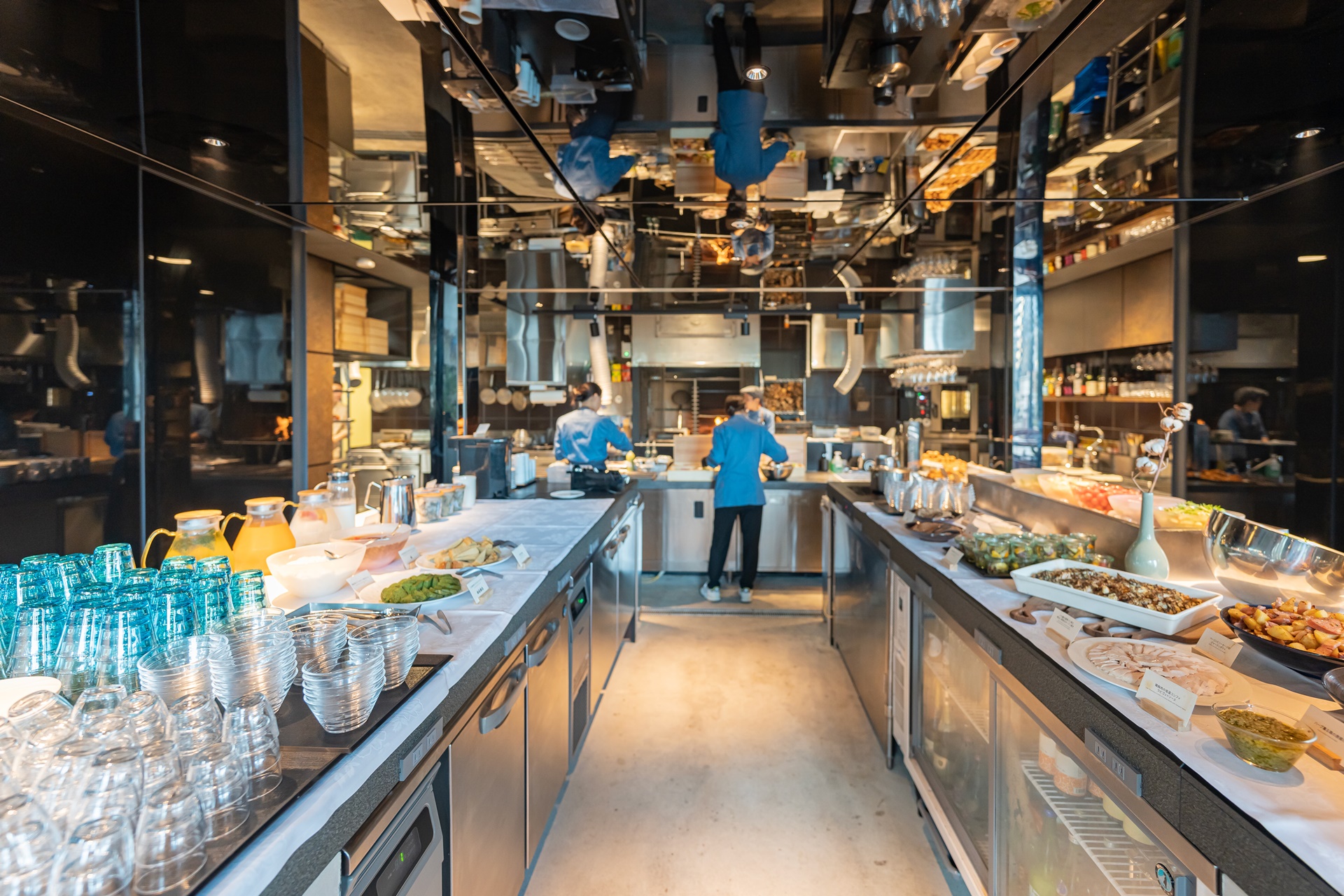 바쁘게 조식 준비 중인 더 로얄 파크 캔버스 후쿠오카 나카스 호텔의 레스토랑