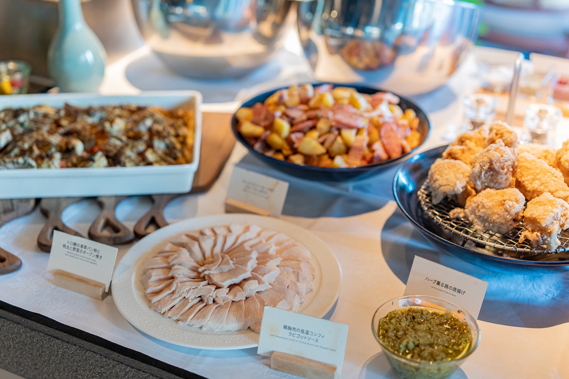 더 로얄 파크 캔버스 후쿠오카 나카스의 조식은 뷔페 식이면서 1인 1개의 단품요리를 주문할 수 있습니다.