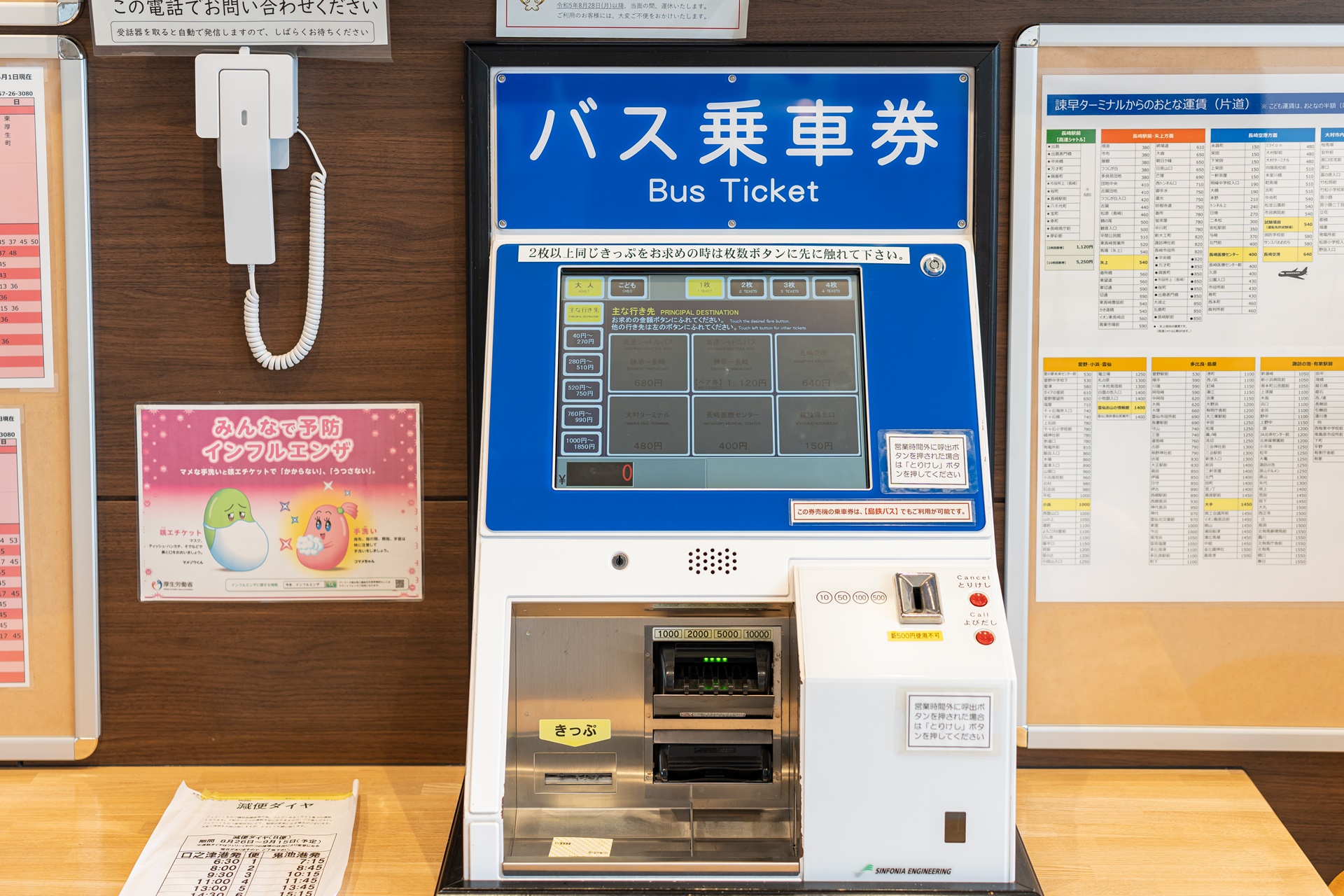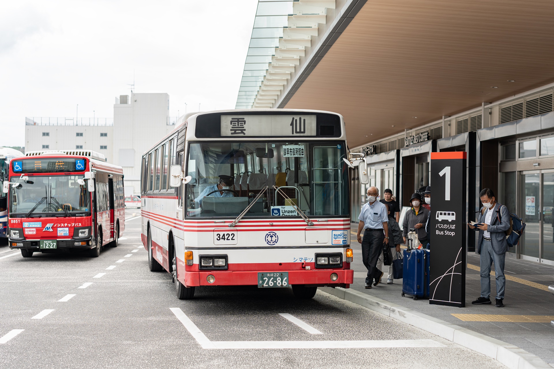 운젠까지 버스는 1번 승강장에서 탑승합니다.
