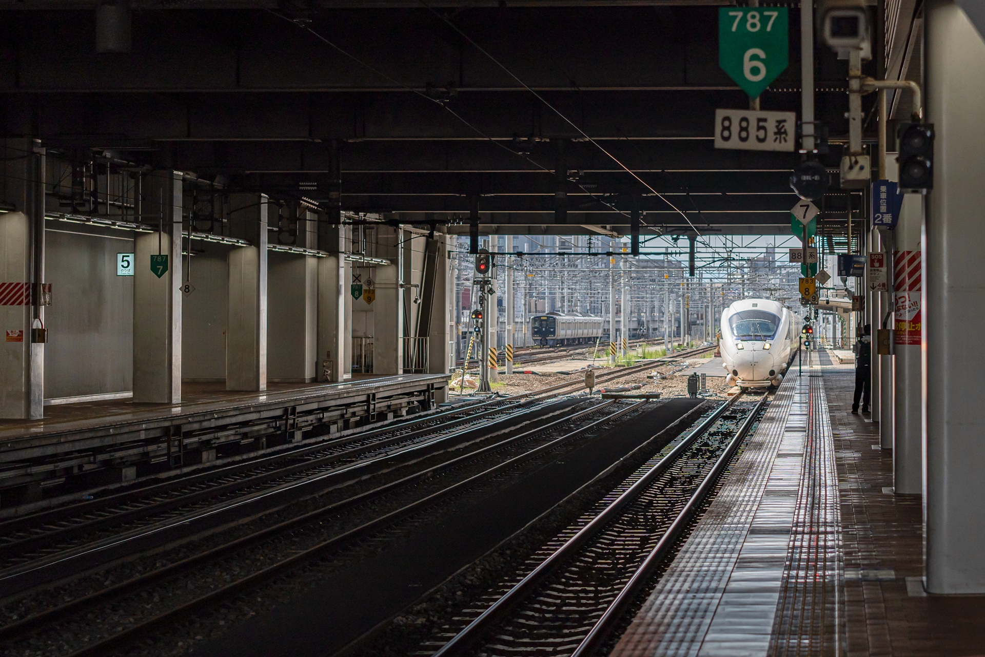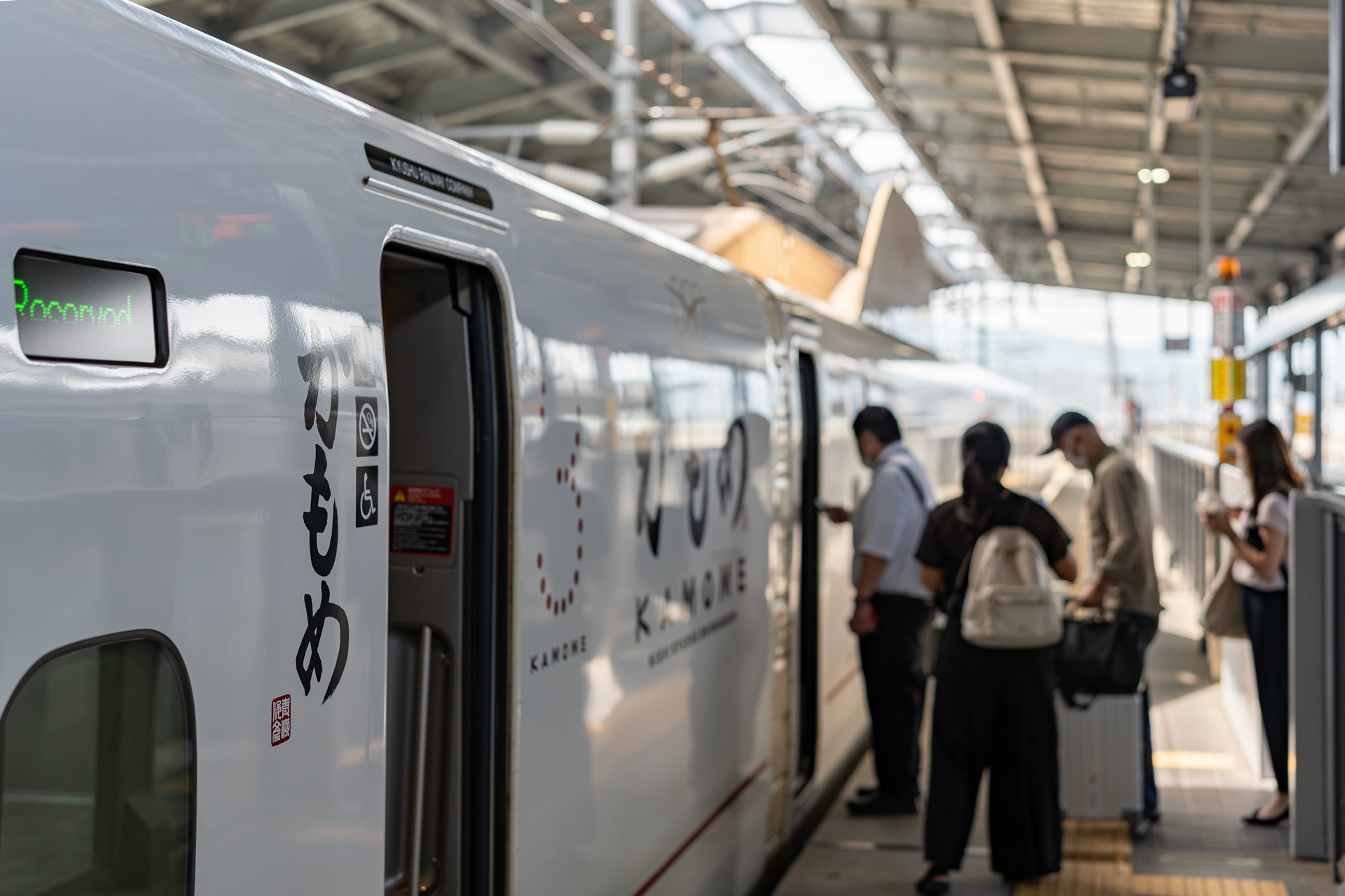 다케오 온천까지 이동하는 특급열차 가모메(カモメ, 갈매기) 가 들어옵니다.