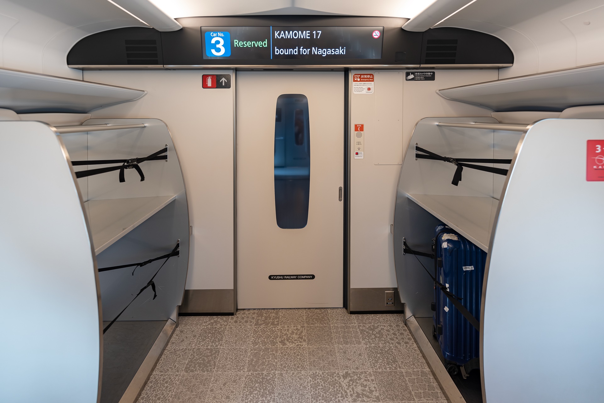 규슈의 특급 열차에는 차량 마지막에 큰 짐을 보관하는 장소가 있습니다.