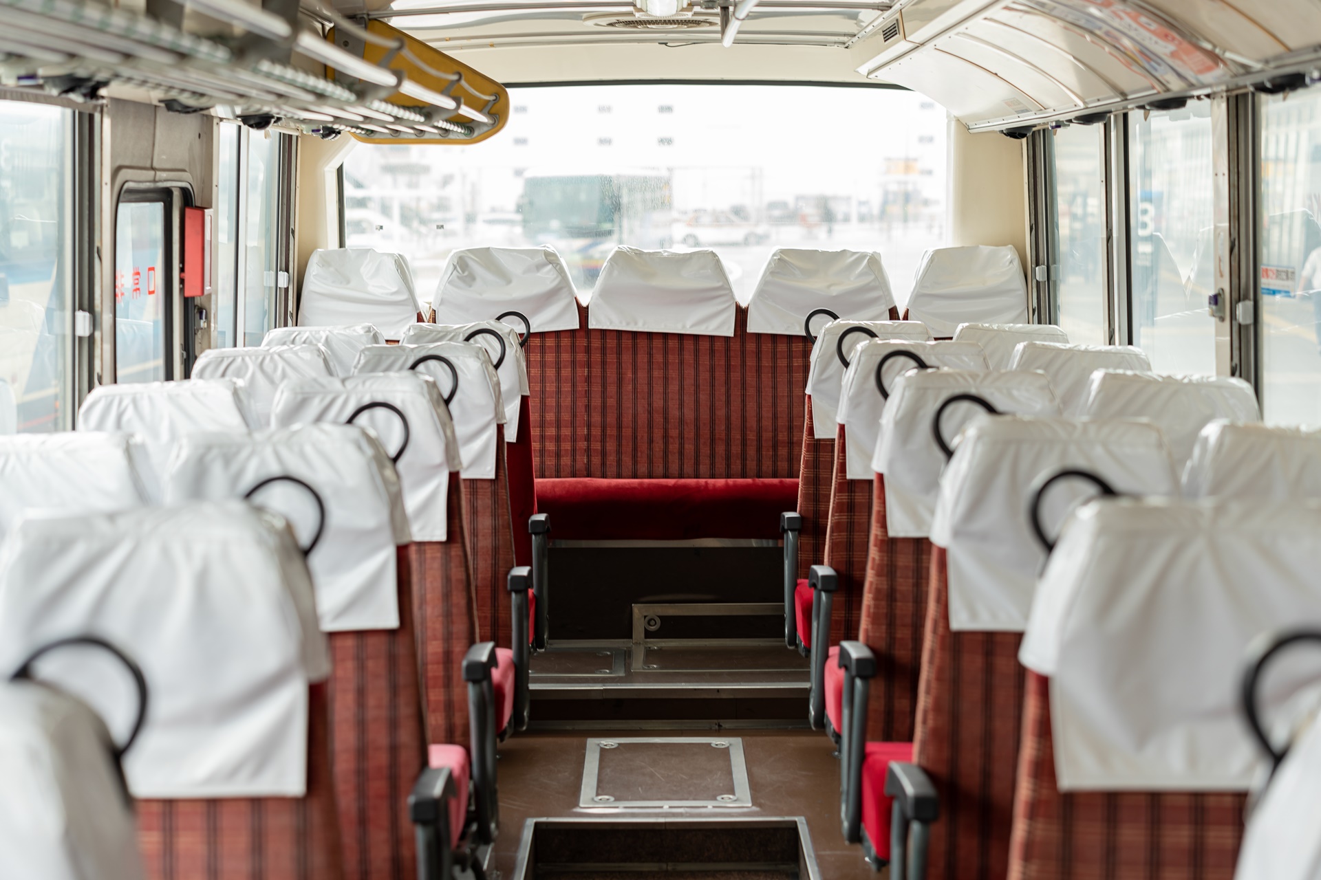 버스는 상당히 오래된 느낌이고 손님은 적어 자리가 많이 남았습니다.