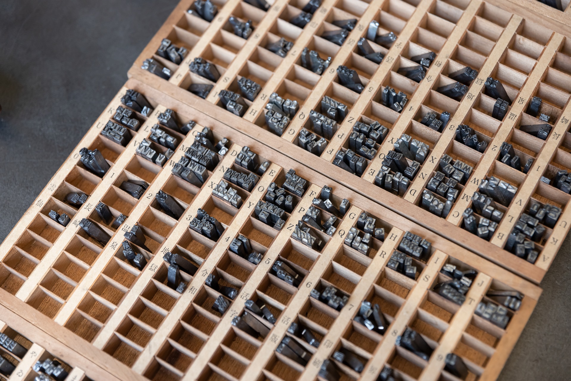 하나 하나 정성스럽게 활판 인쇄 틀을 만들어서