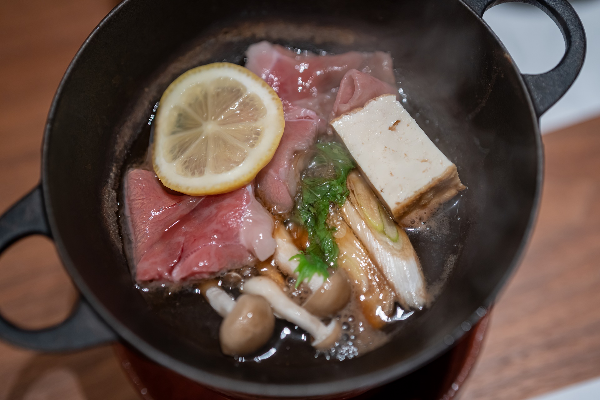나가사키 지역은 구워서 말린 야키아고焼き顎(날치) 로 육수를 많이 내는데 이번 메인 요리에도 날치 육수를 이용한 샤브샤브 요리가 나왔습니다. 날치 육수는 최근에는 라멘에도 많이 사용되며 일본 전국적으로 인기가 높습니다. 멸치 육수보다는 조금 더 달고 감칠맛이 있는 육수입니다.