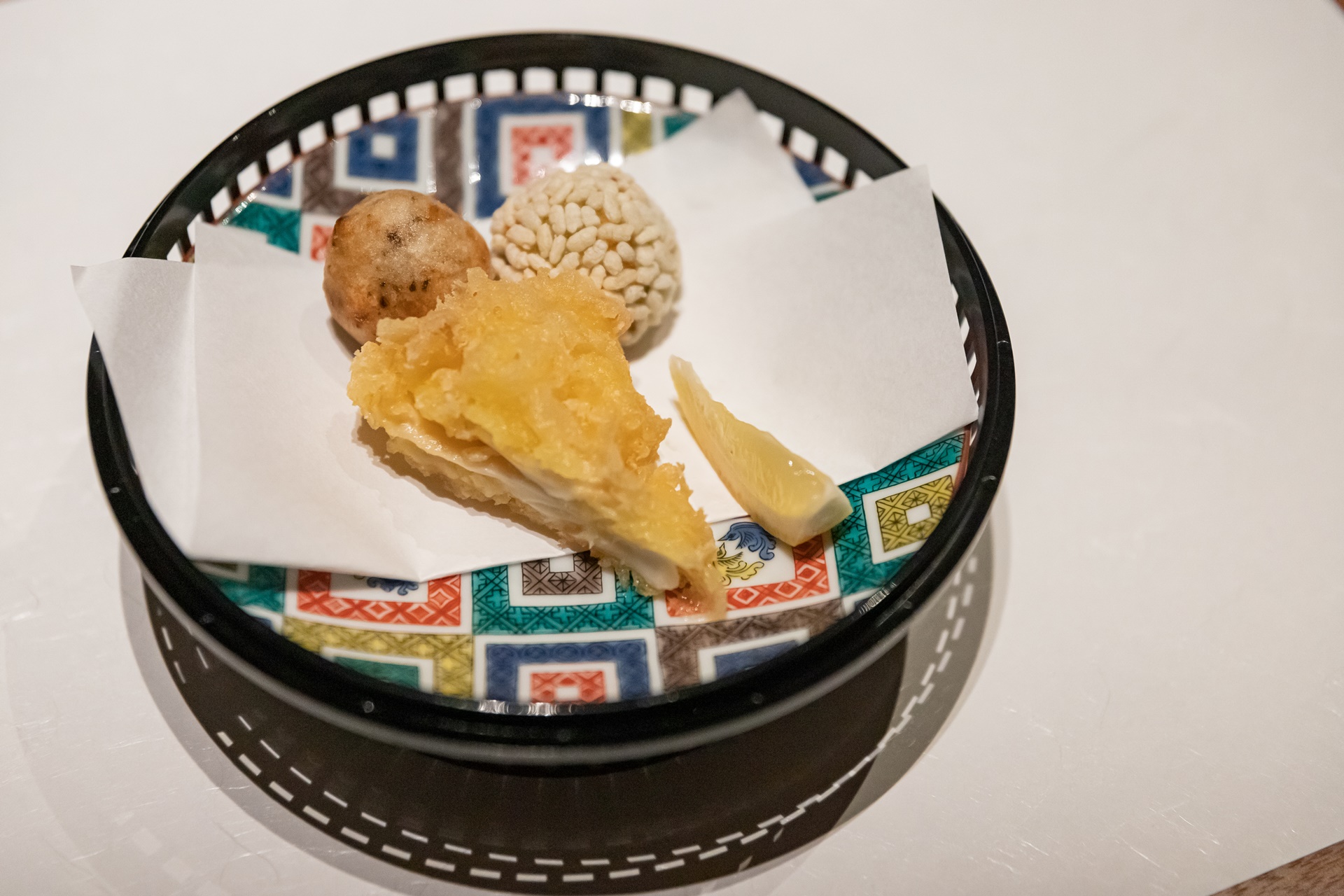 튀김 요리는 토란 튀김과 감자튀김, 잎새버섯 튀김이 있었습니다.