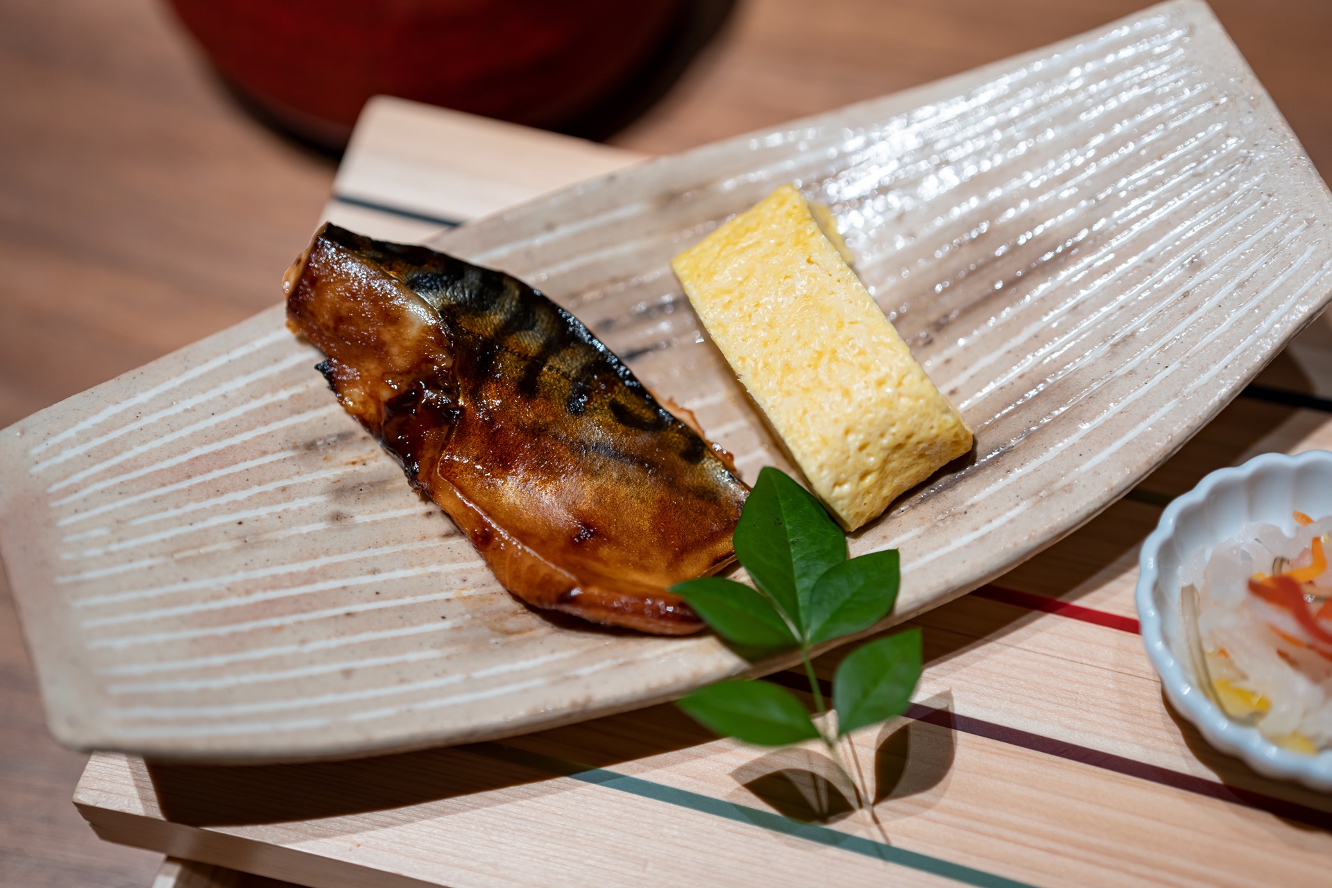 다양한 반찬과 함께 메인인 생선요리(삼치), 계란말이