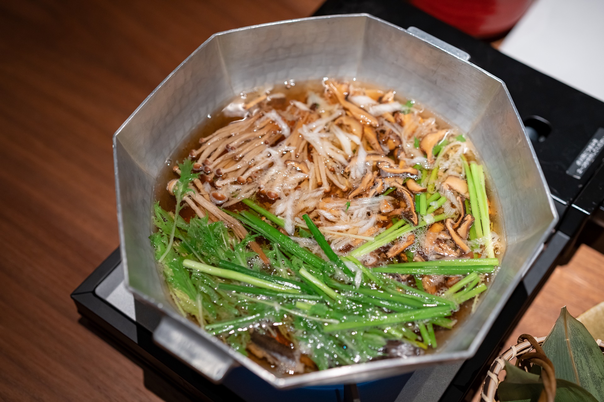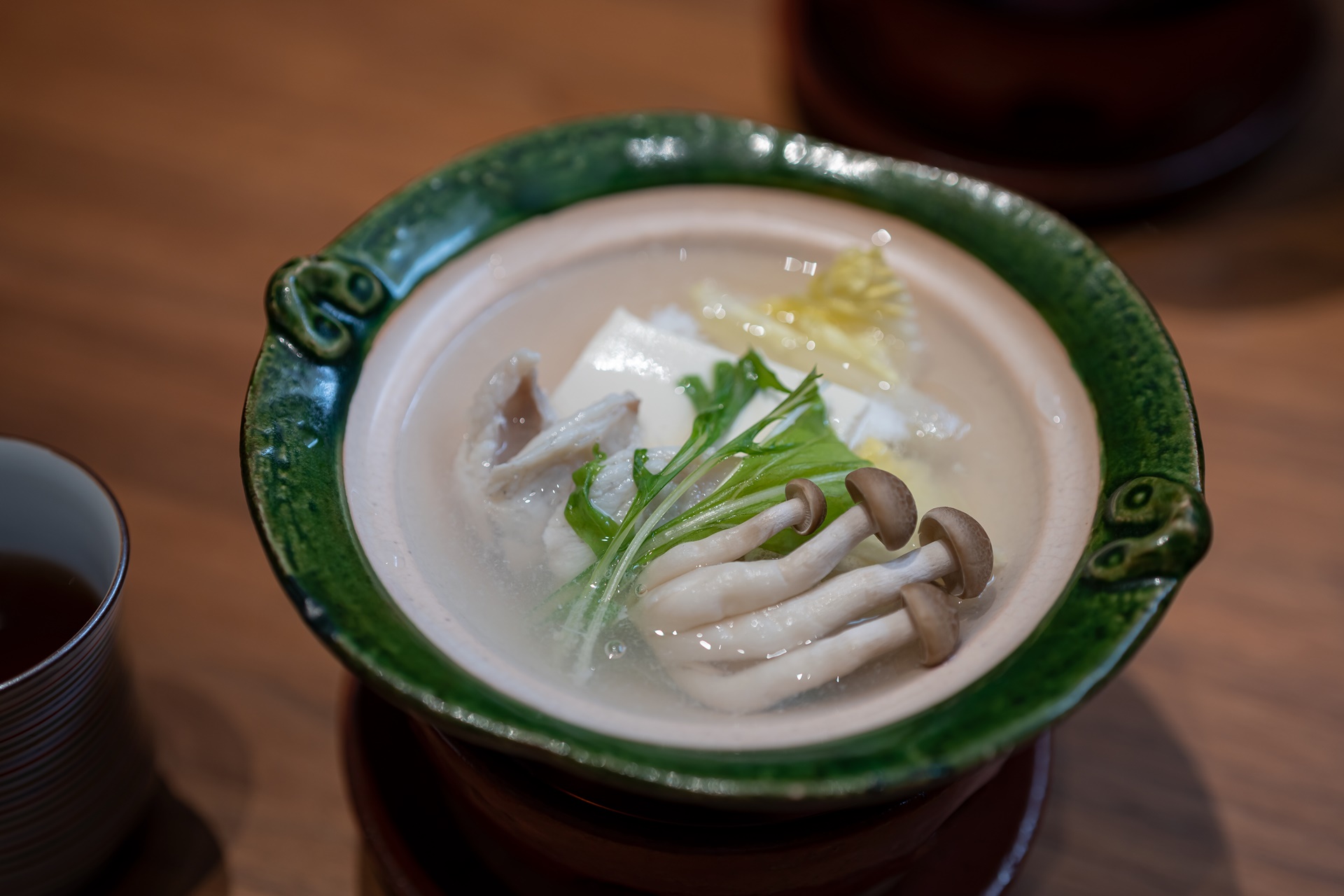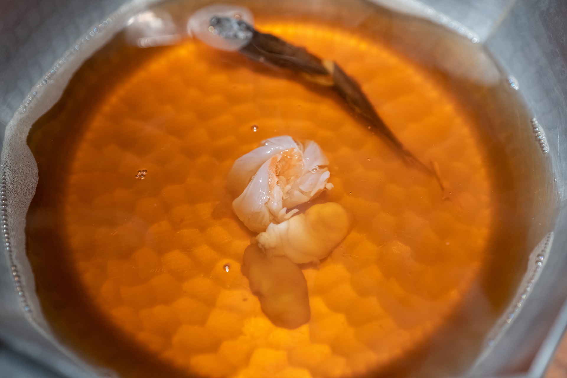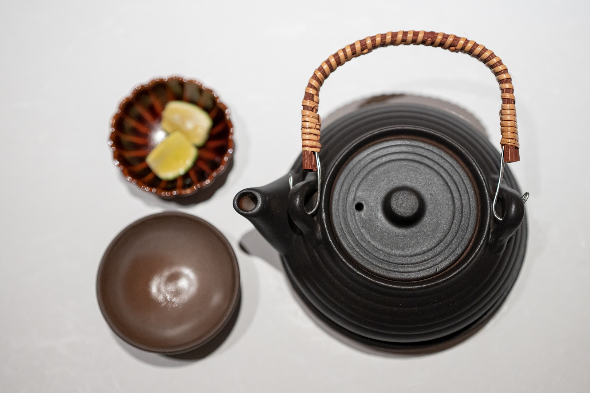 나가사키 지역은 구워서 말린 야키아고焼き顎(날치) 로 육수를 많이 내는데 이번 메인 요리에도 날치 육수를 이용한 샤브샤브 요리가 나왔습니다. 날치 육수는 최근에는 라멘에도 많이 사용되며 일본 전국적으로 인기가 높습니다. 멸치 육수보다는 조금 더 달고 감칠맛이 있는 육수입니다.