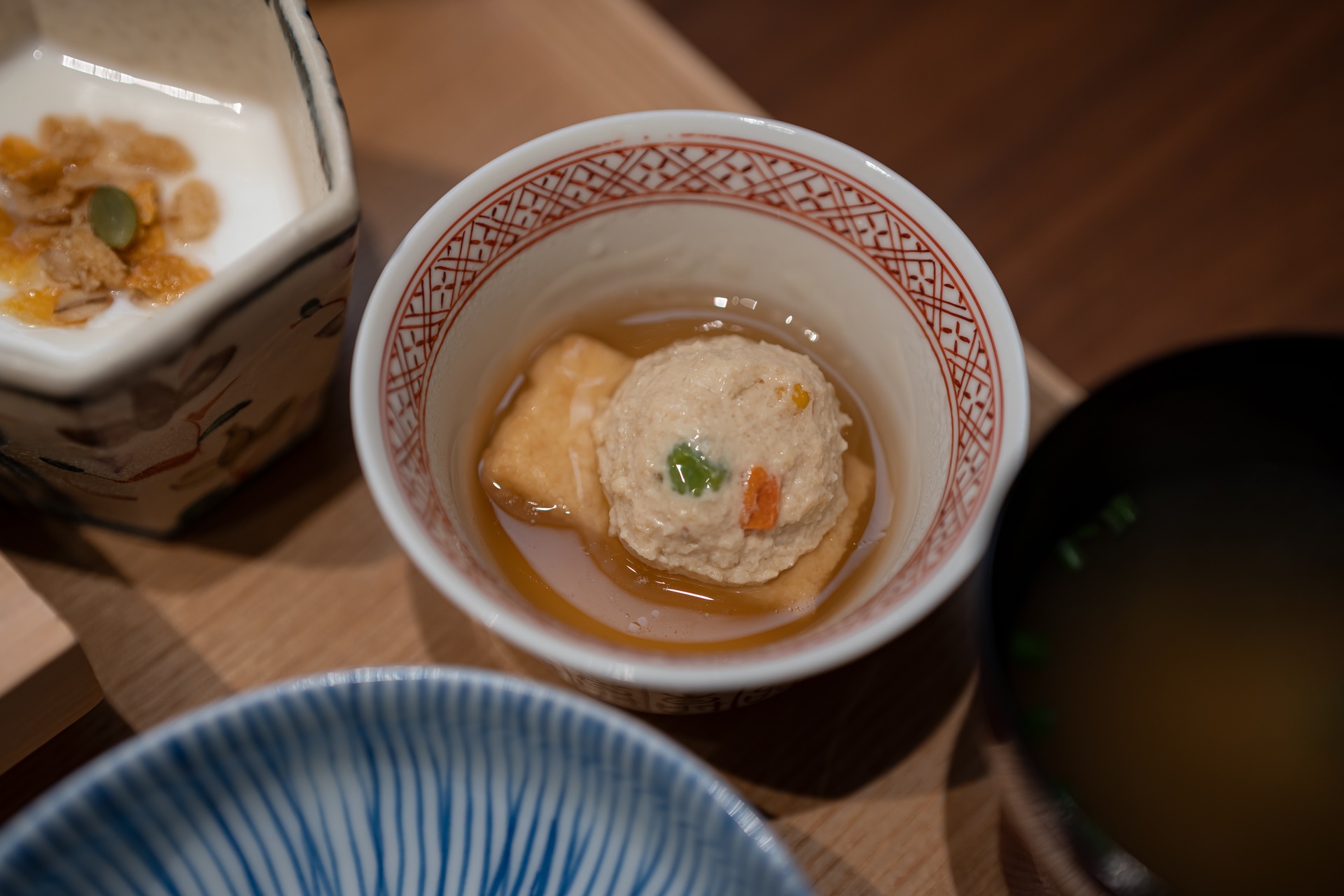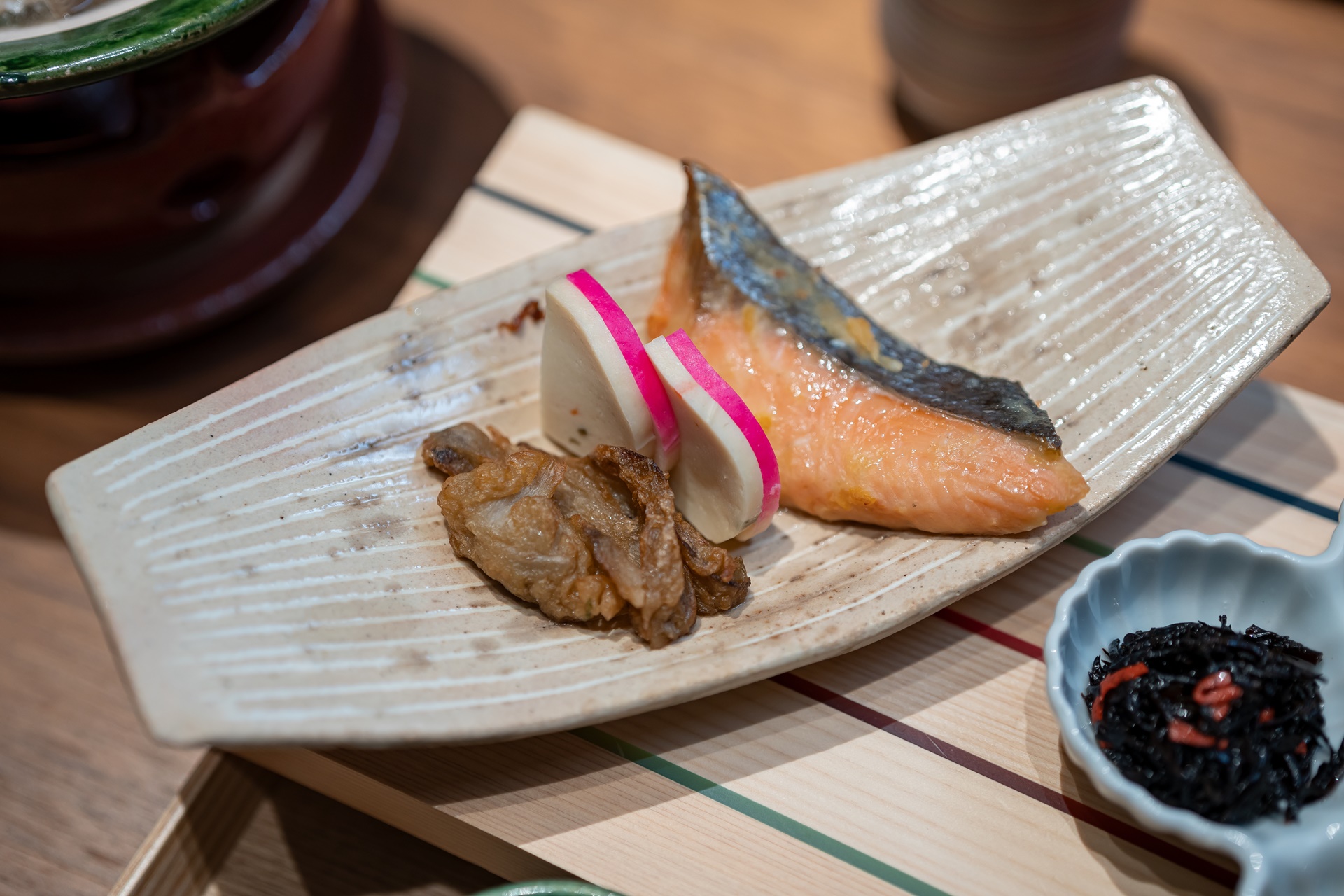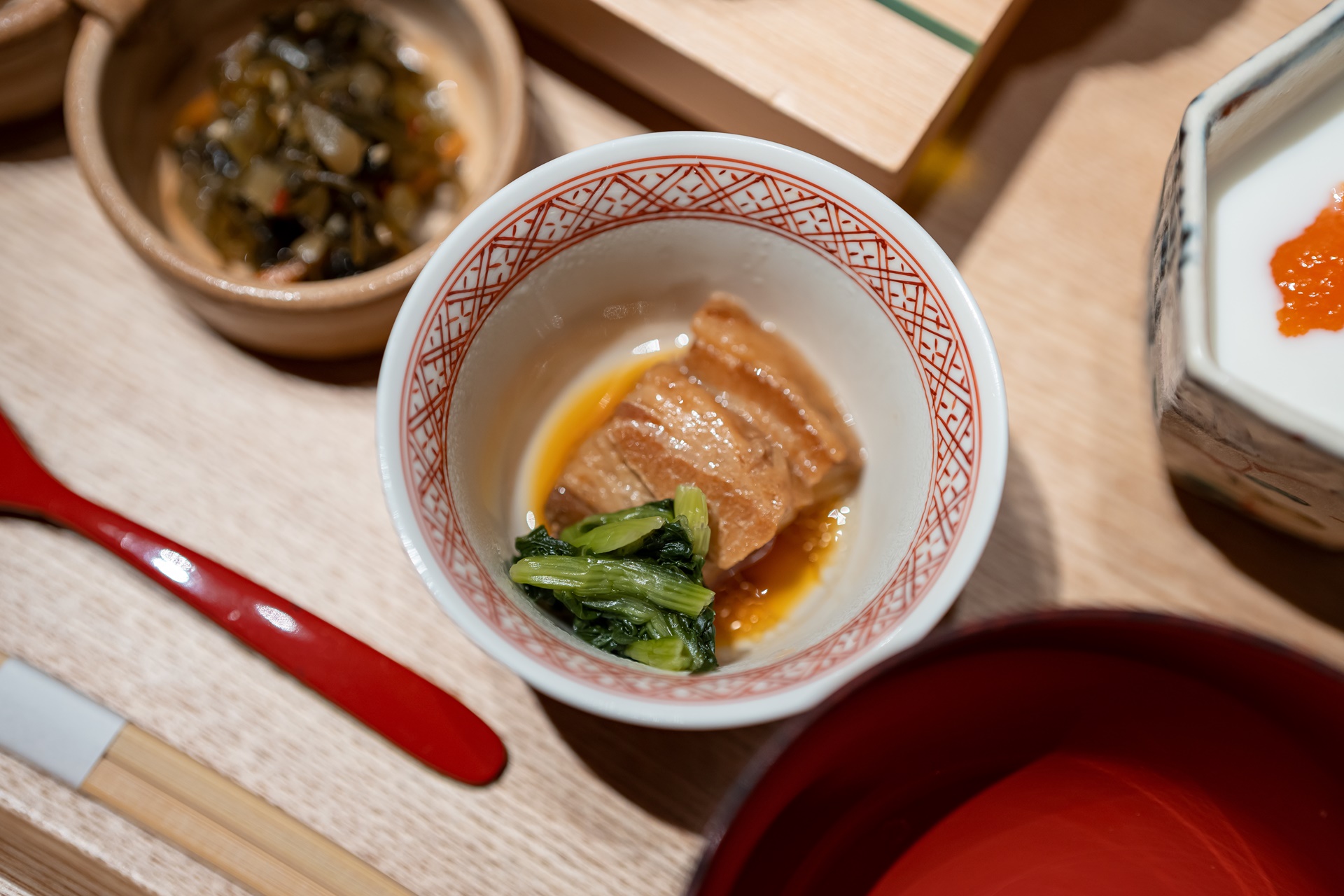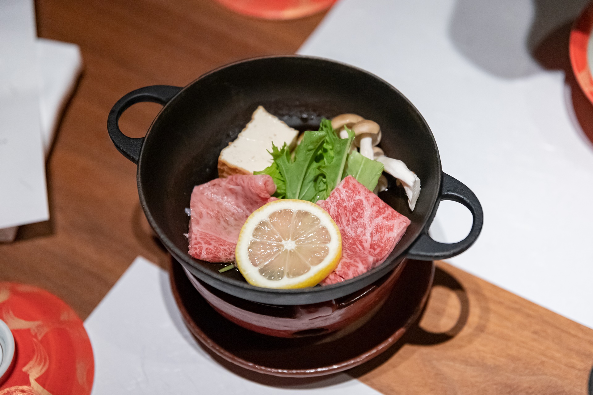 나가사키 지역은 구워서 말린 야키아고焼き顎(날치) 로 육수를 많이 내는데 이번 메인 요리에도 날치 육수를 이용한 샤브샤브 요리가 나왔습니다. 날치 육수는 최근에는 라멘에도 많이 사용되며 일본 전국적으로 인기가 높습니다. 멸치 육수보다는 조금 더 달고 감칠맛이 있는 육수입니다.