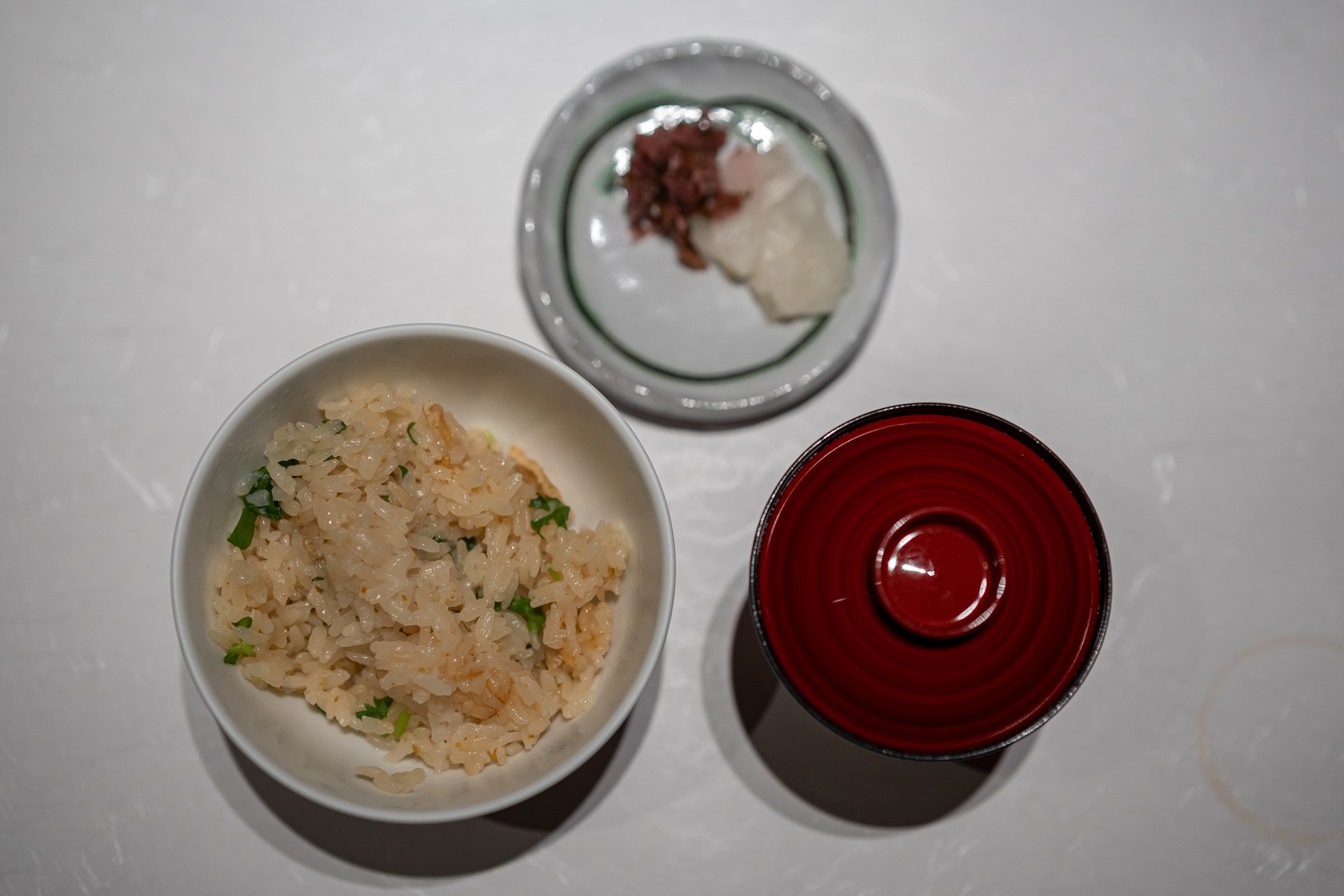 옥돔과 새우신죠(질 주전자를 사용해 만든 일본의 짐 요리)가 나왔습니다.