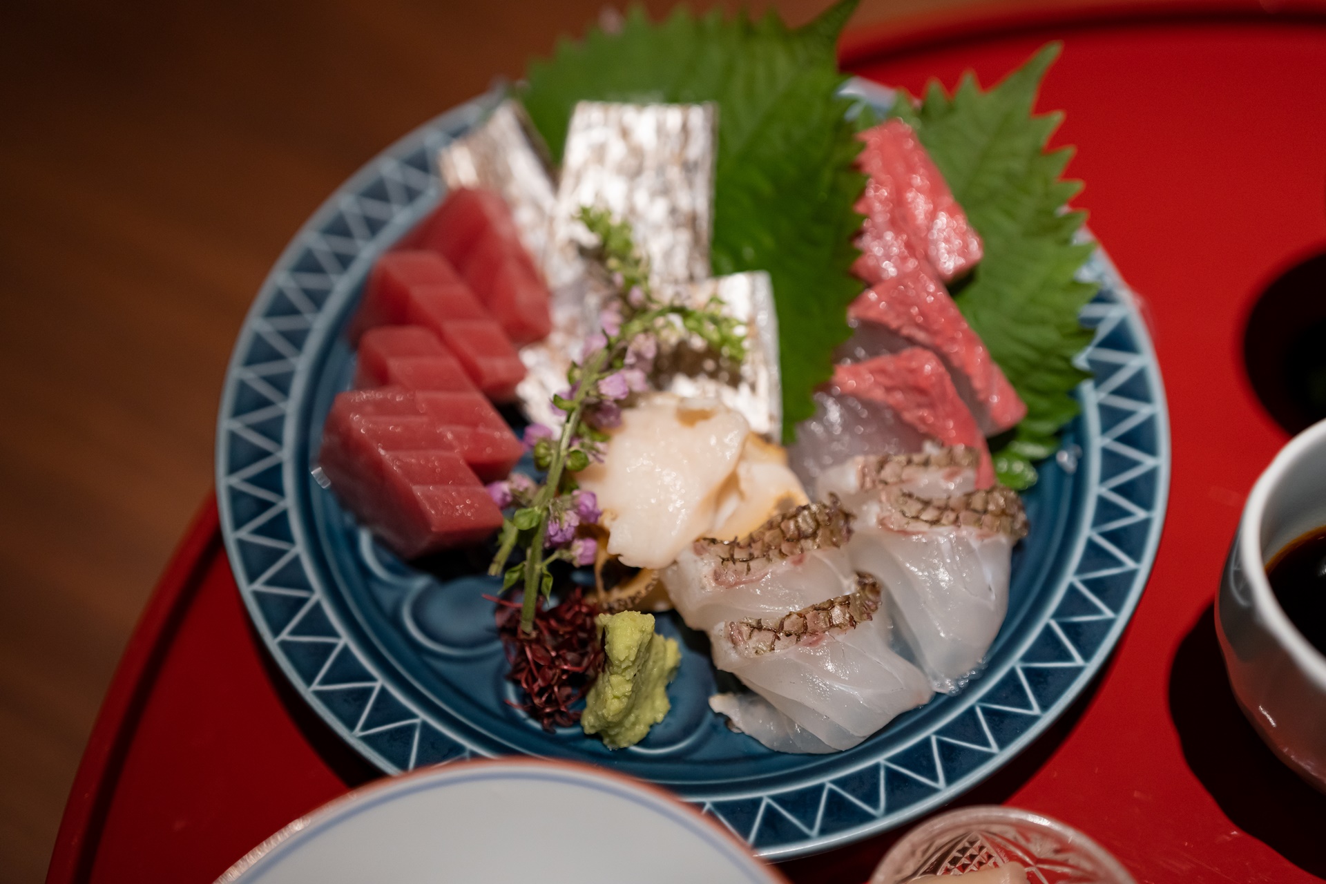 료칸요리의 꽃인 호라쿠모리에는 제철 생선회와 체철 식재료를 사용하여 계절을 이쁘게 담은 요리들이 나오며 핫슨이라 하는 8가지 요리가 나옵니다.