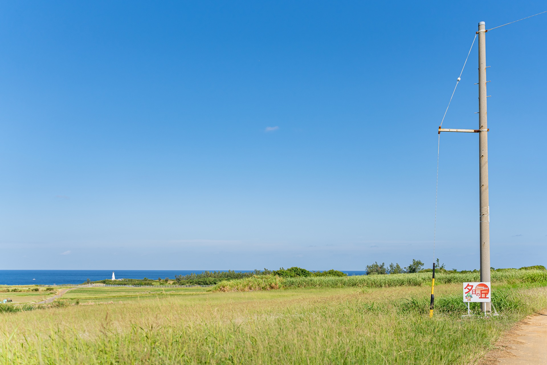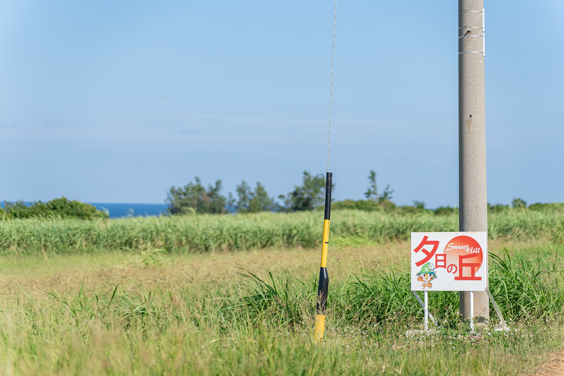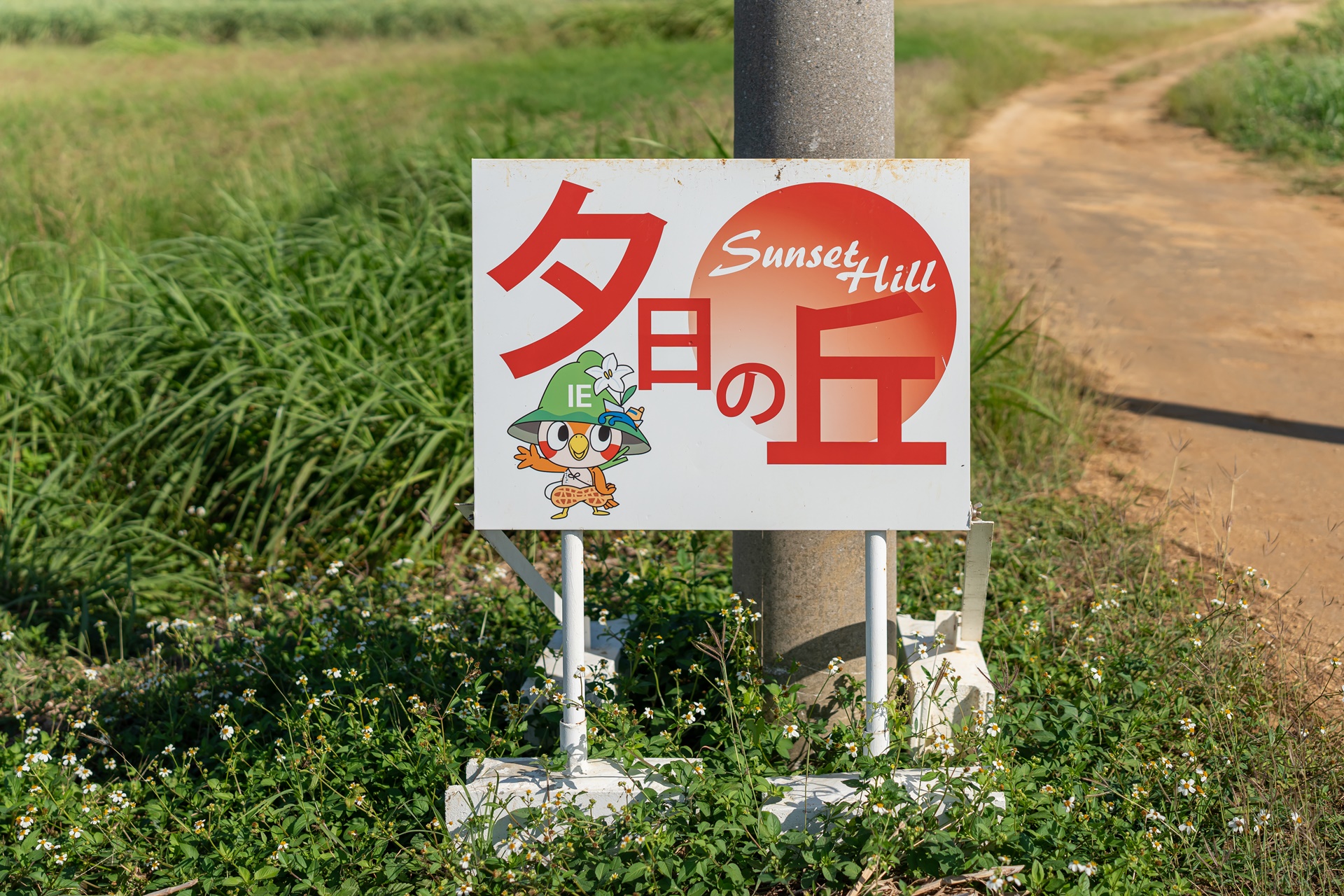 이에섬 유히노오카는 오키나와 이에섬 최 서단에 위치한 작은 언덕으로 주변에는 북쪽의 미군 기지 외에 아무것도 없는 벌판이라 석양을 이쁘게 볼 수 있는 곳 입니다. 이에섬의 마스코트가 그려져 있는 팻말을 따라 가면 쉽게 도착할 수 있습니다.