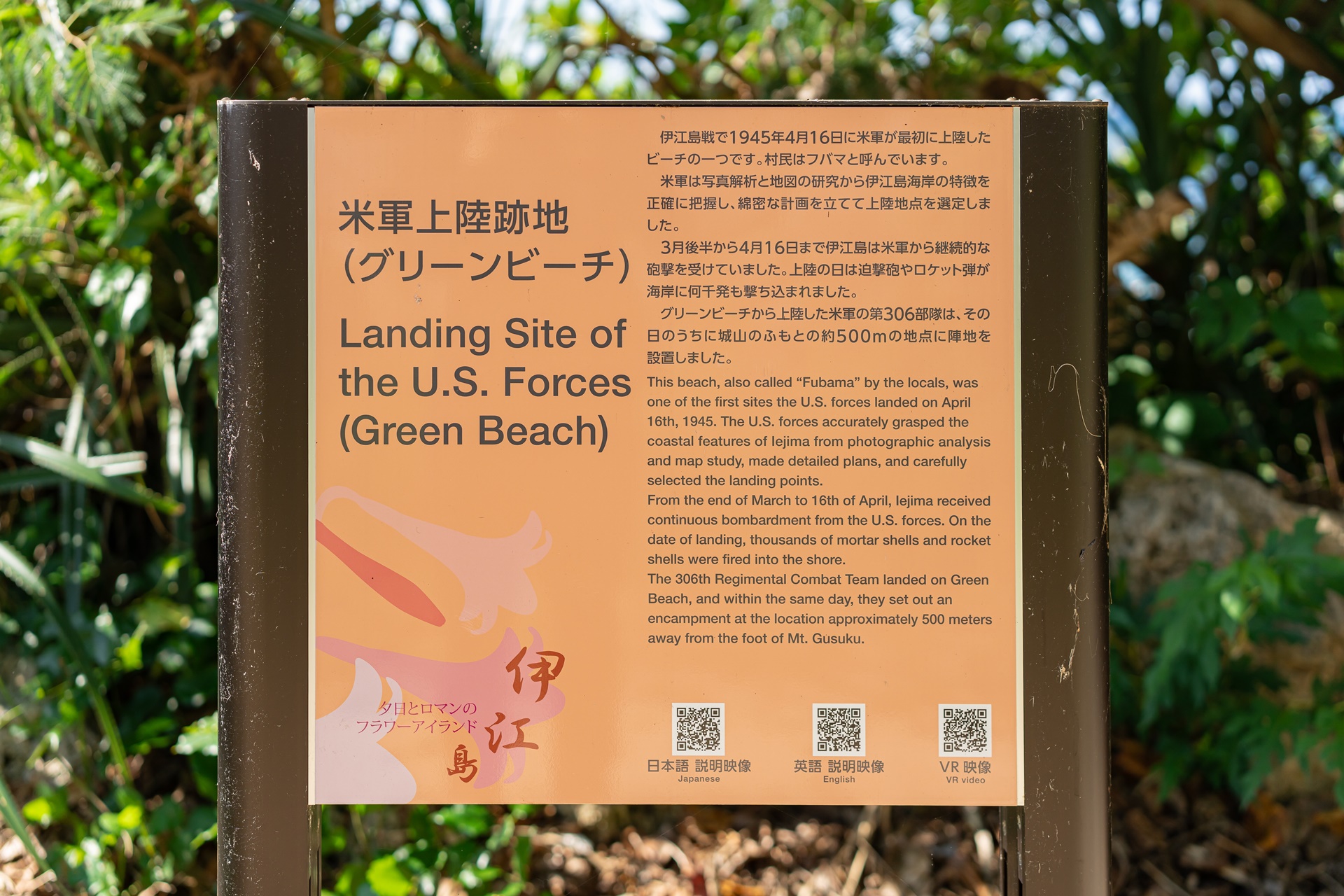 태평양 전쟁 때 이에섬에 미군이 상륙하였으며 이때 상륙한 해변 중 한 곳이 그린 비치라고 합니다.