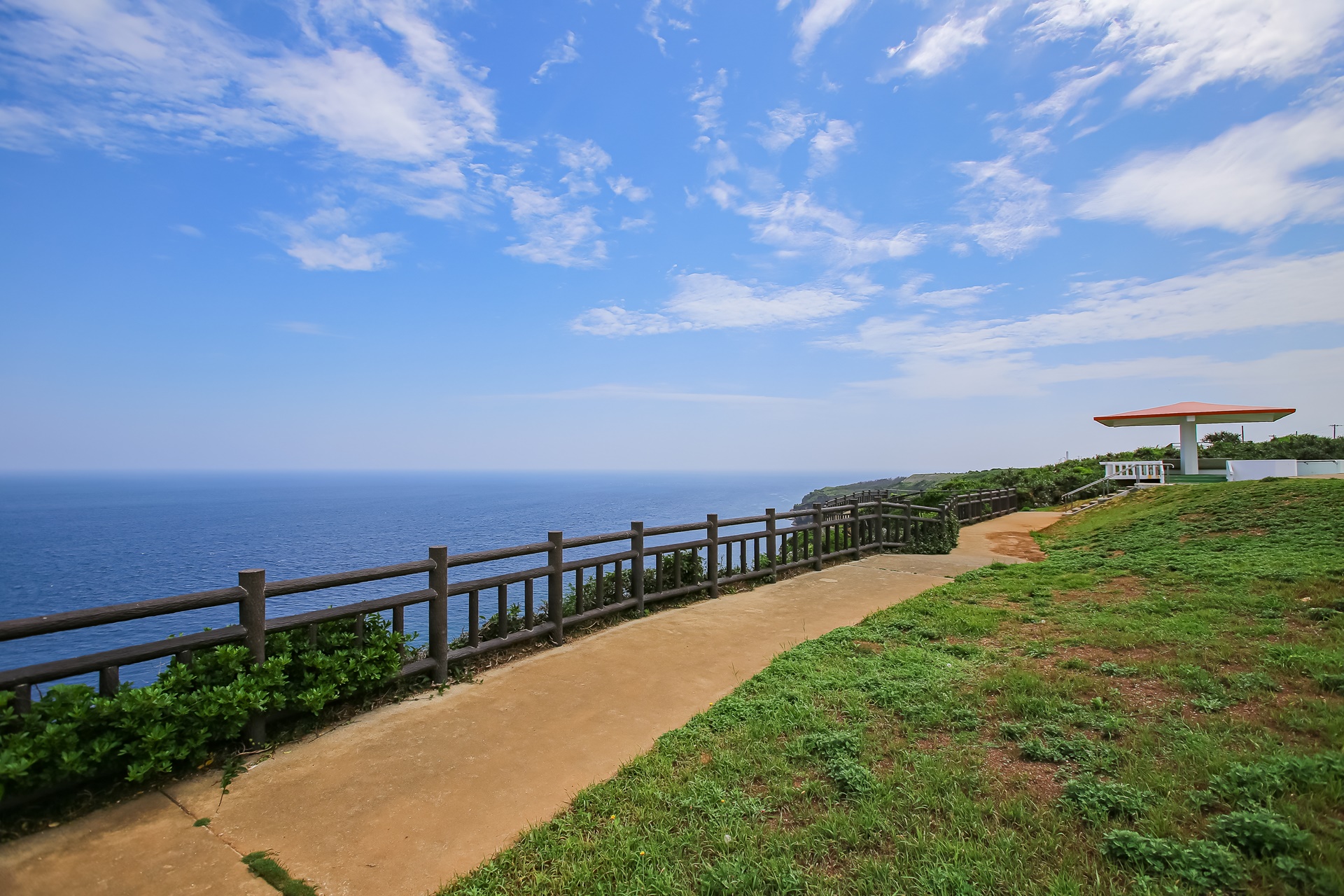 와지 전망대에는 햇볕을 피할 수 있는 작은 전망대가 있고 울타리를 따라 작은 산책로가 놓여 있습니다.