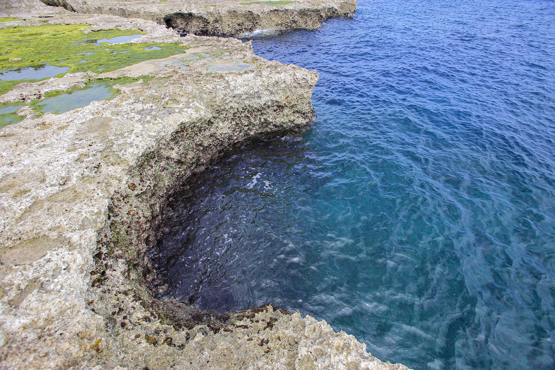 와지는 직접 아래까지 내려가 볼 수 있으며 과거에는 바위 사이에서 솟아 나오는 지하수를 직접 퍼올렸다고 합니다. 지금은 이곳에 온 미군들에 의해 수송관로가 설치되어 편하게 물을 얻을 수 있고 섬의 물 부족도 많이 해결하였다고 합니다.