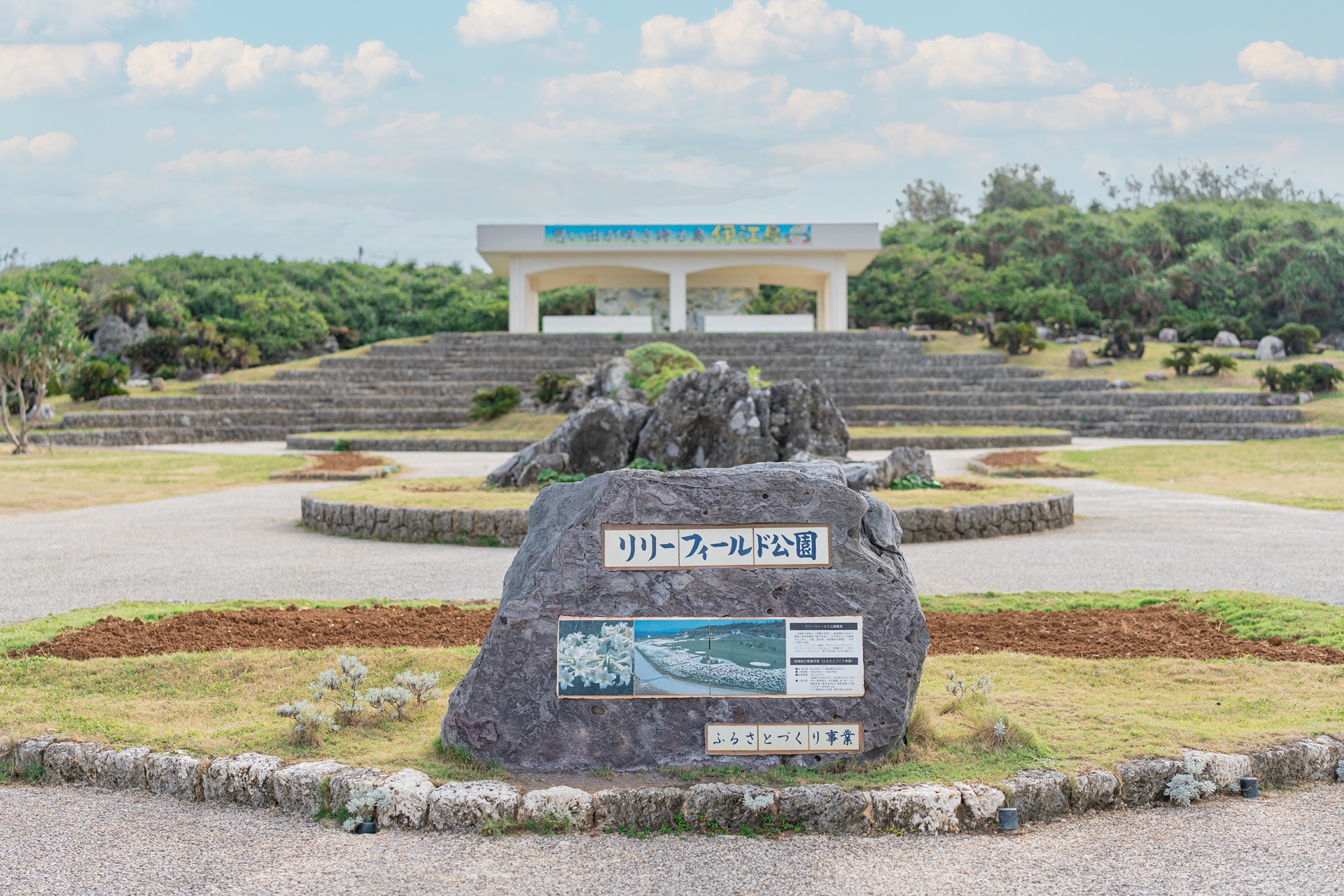 공원 중앙에는 나칸카리부시(仲村渠節) 비석이 세워져 있으며 이는 이에섬의 민요를 적어 놓은 비석 입니다.