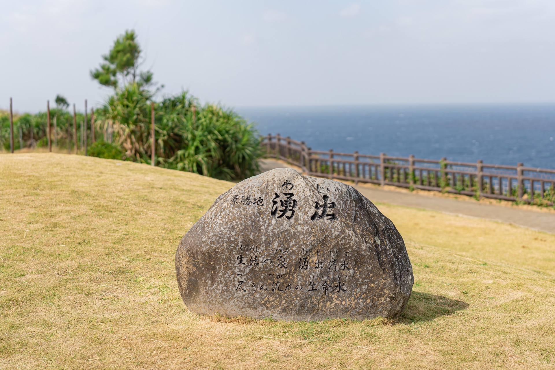 이에섬 북쪽에는 바다에서 지하수가 솟아 올라오는 와지(湧出, 용출) 이라는 지역이 있으며 오래전 부터 섬의 수원지로 지금도 식수로 사용되고 있습니다. 60미터의 절벽 위의 작은 언덕에는 이곳을 알리는 작은 비석과 함께 전망대가 설치되어 있습니다.