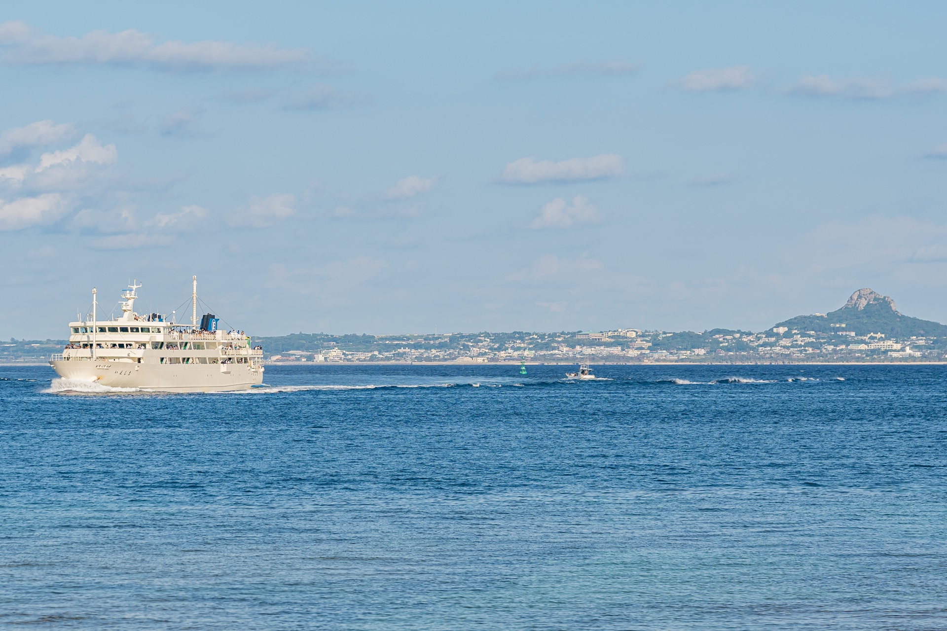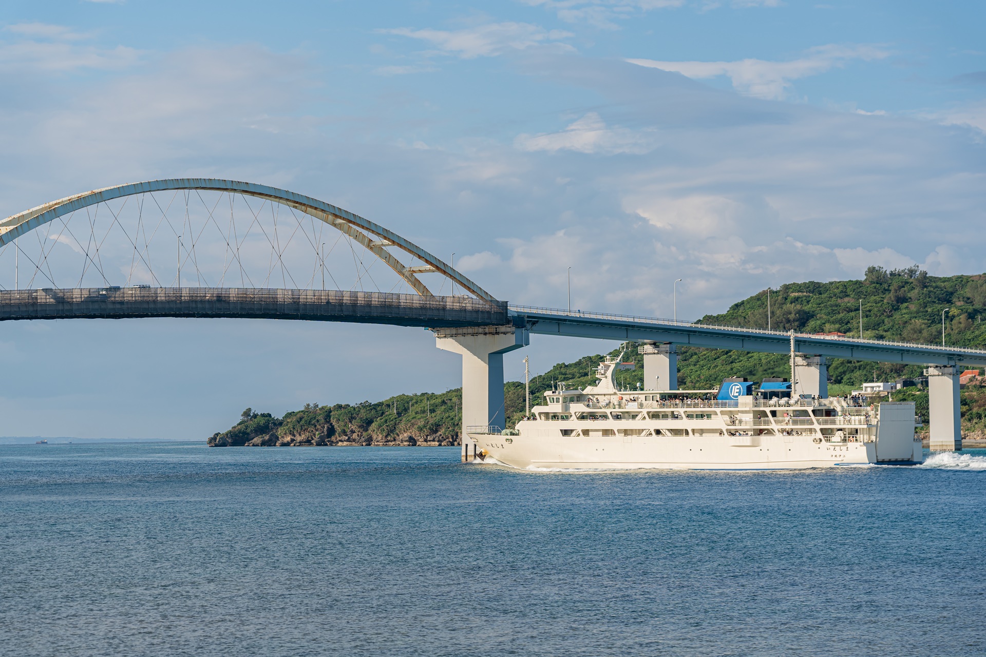 세소코 대교 다리 사이에는 배가 드나들며 모토부 항구와 이에섬을 연결하는 페리도 이곳으로 지나갑니다.