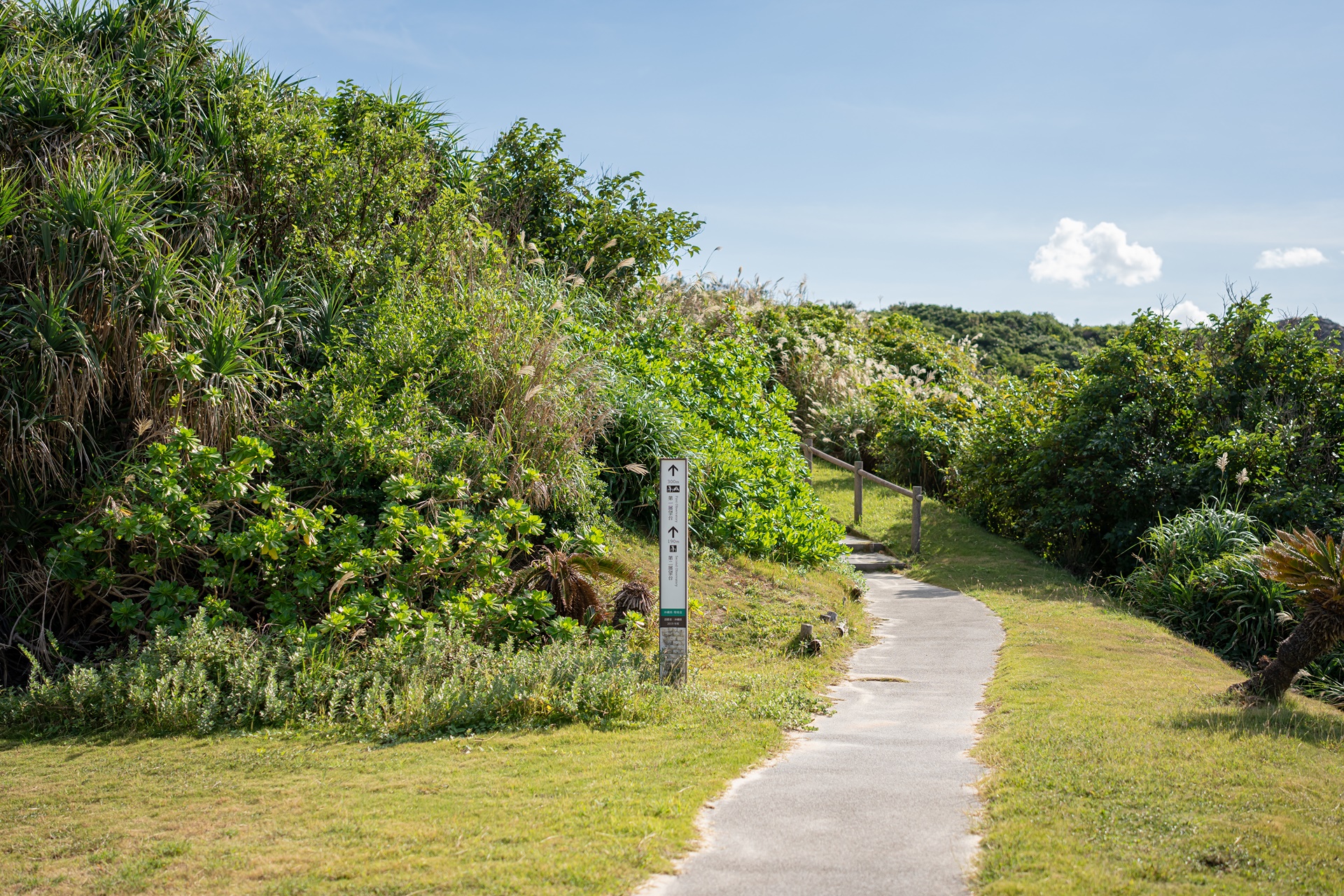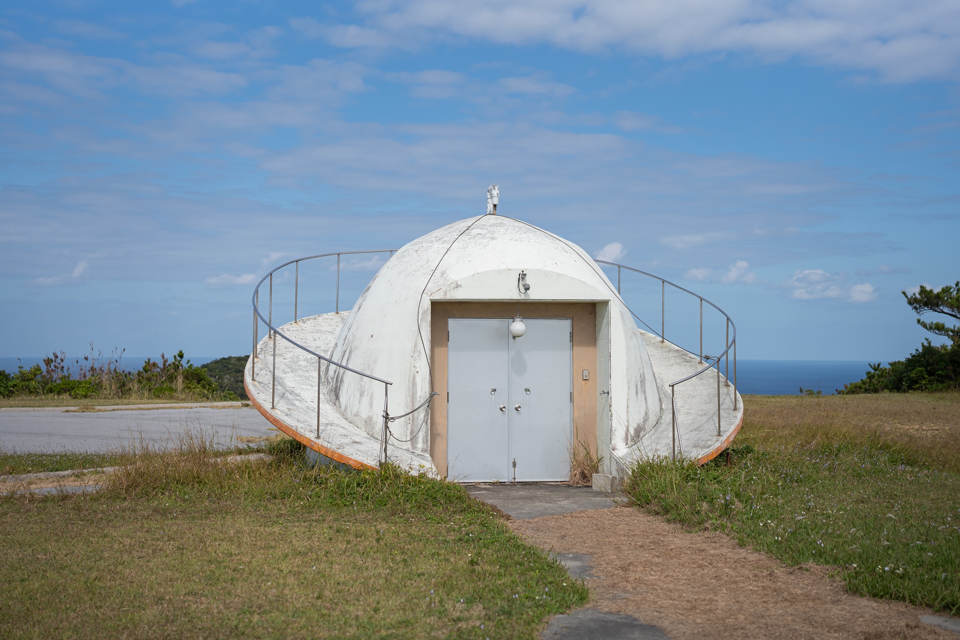 그들에게 자리를 양보해주고 찾은 곳은 반대편의 히가시 전망대(동 전망대) 이 두 전망대는 국립 오키나와 청소년 교류의 집 시설 안에 있으며 이곳까지 길은 잘 포장되어 있습니다. 동쪽 전망대에서는 바로 앞의 마에지마 섬과 멀리 오키나와 본토의 풍경을 감상할 수 있습니다. 수평선을 선명하게 바라볼 수 있는 것도 이 전망대의 매력이라고 합니다.
