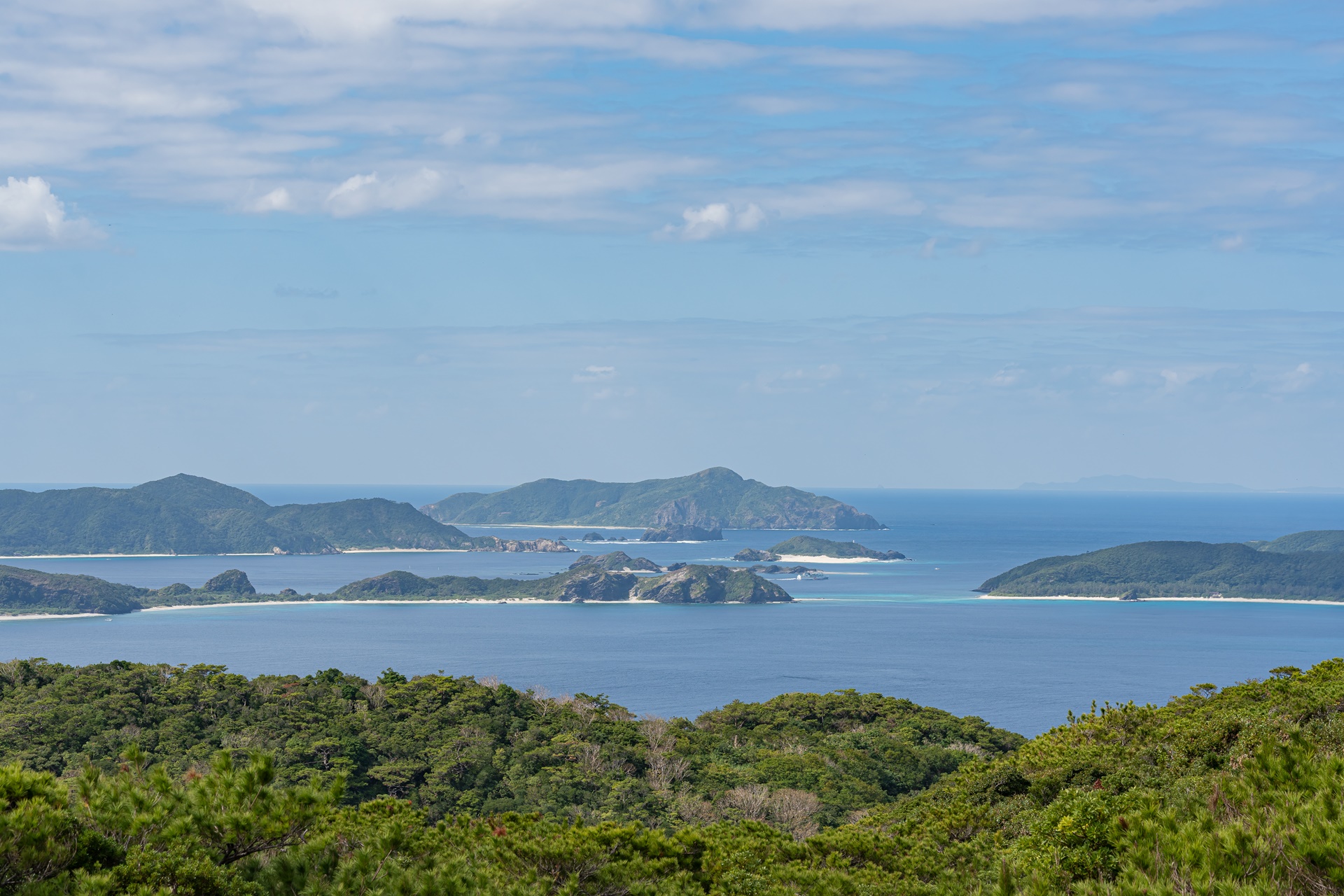 서쪽 전망대에서 보이는 게라마 제도의 섬들입니다. 관광지로 유명한 자마미 섬, 아카 섬도 이곳에서 보입니다.