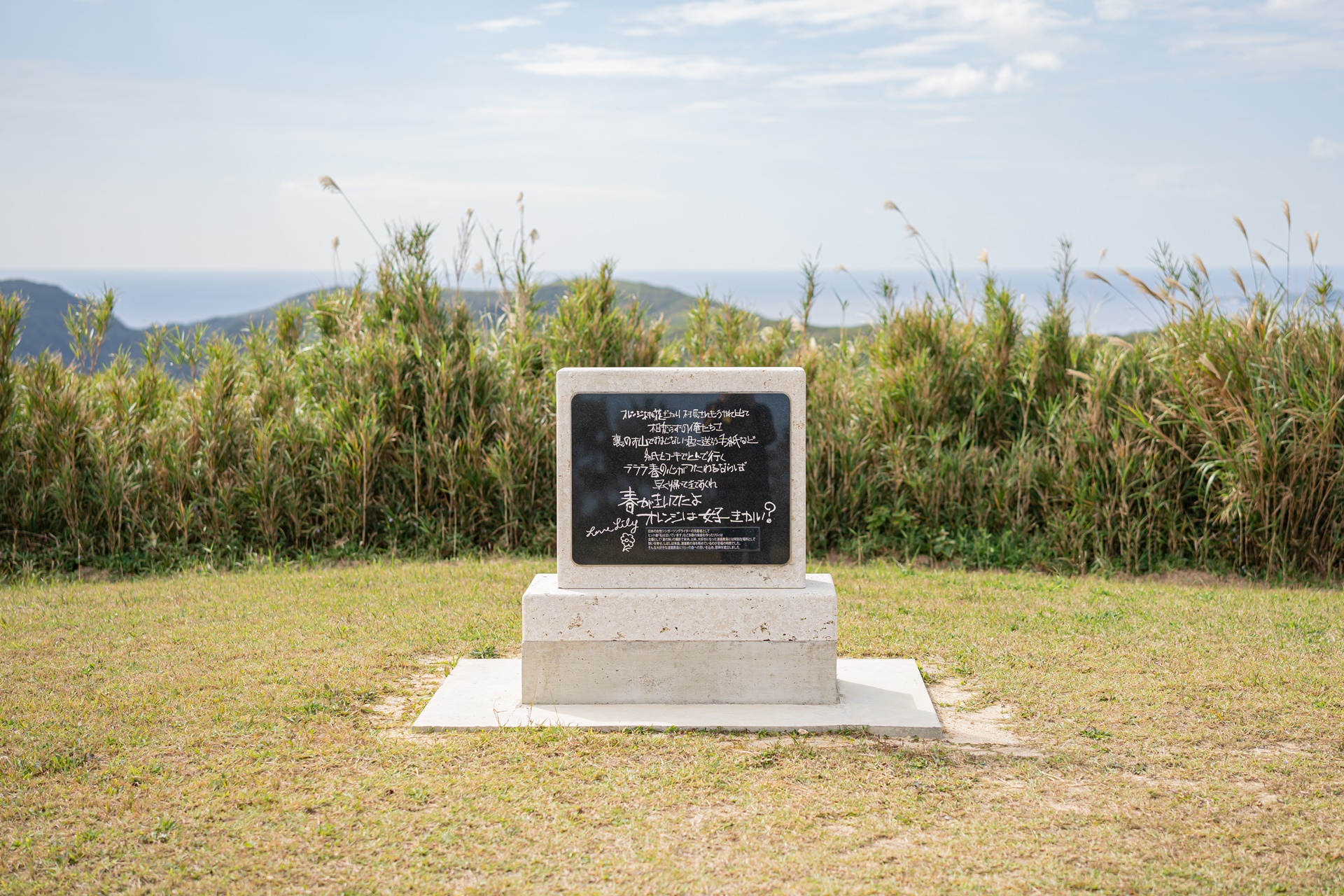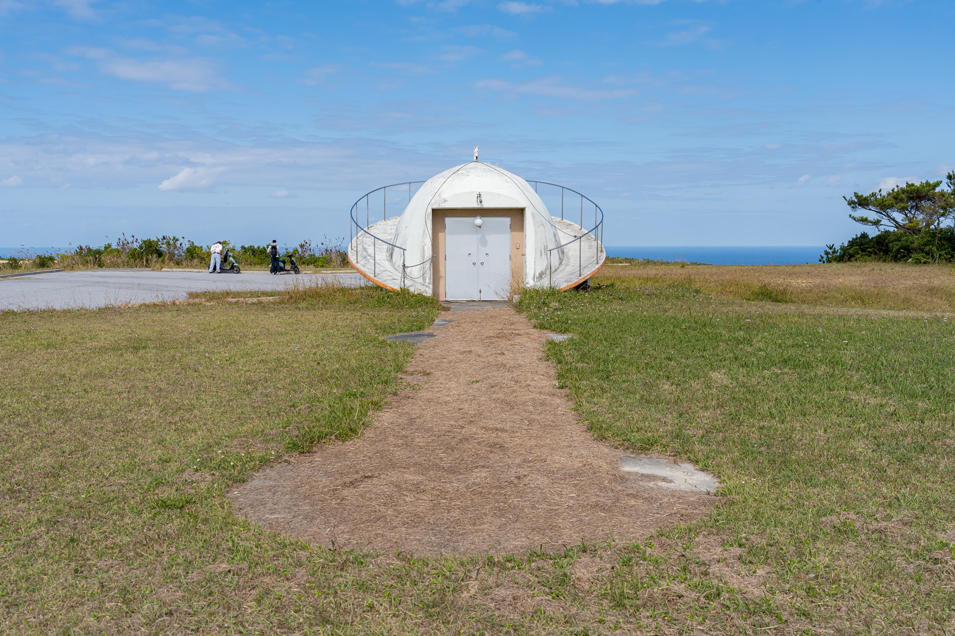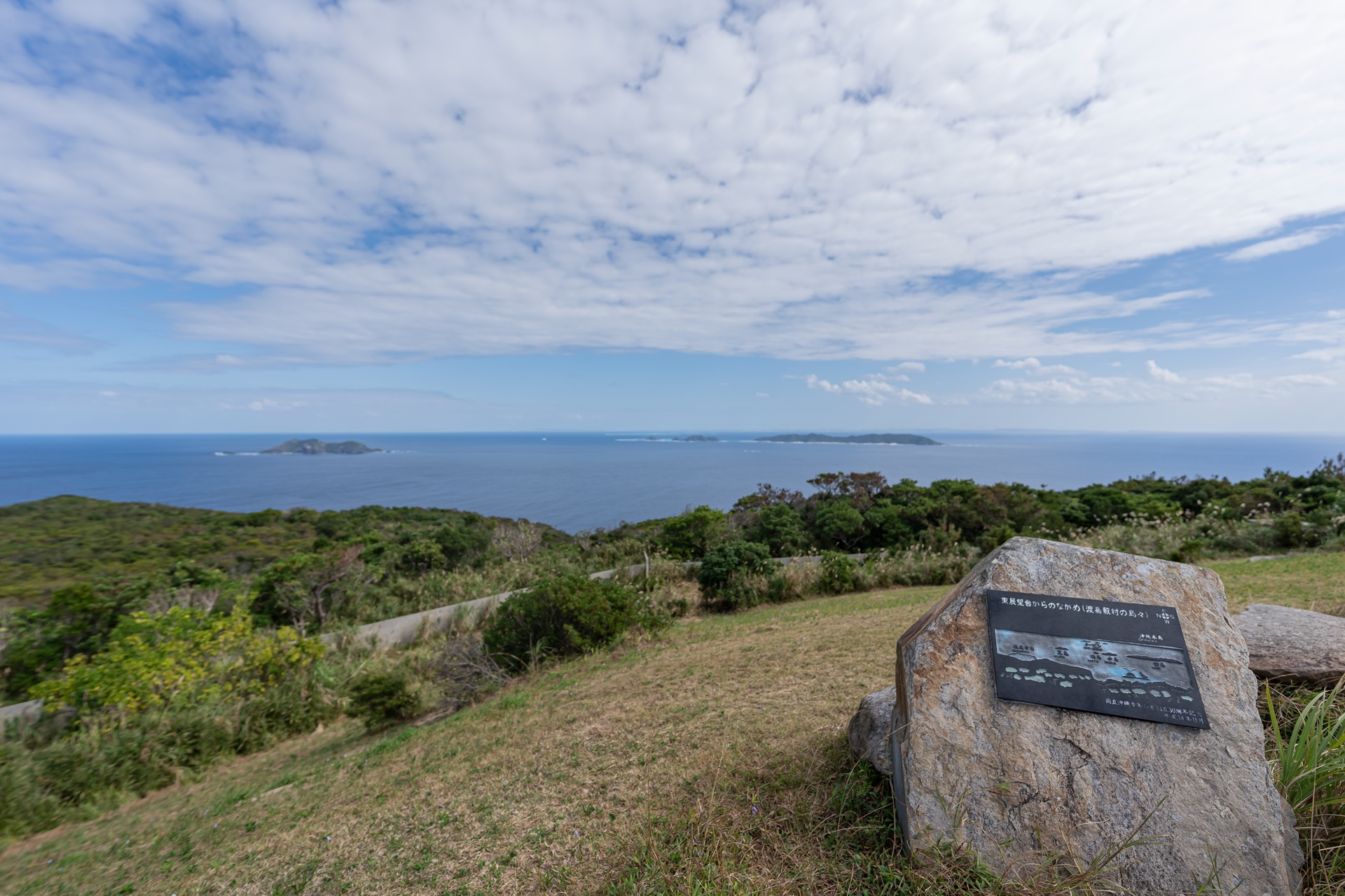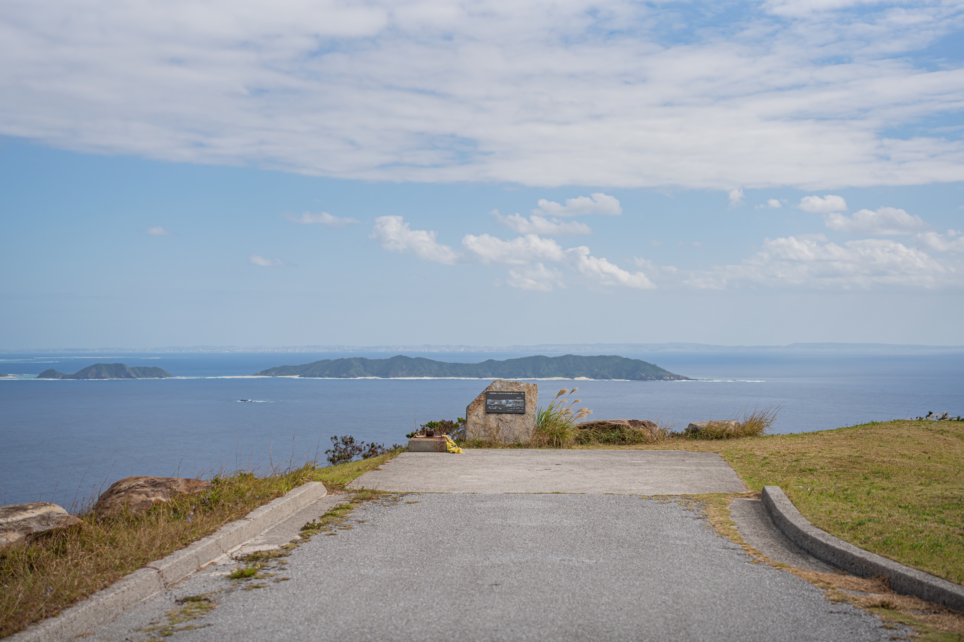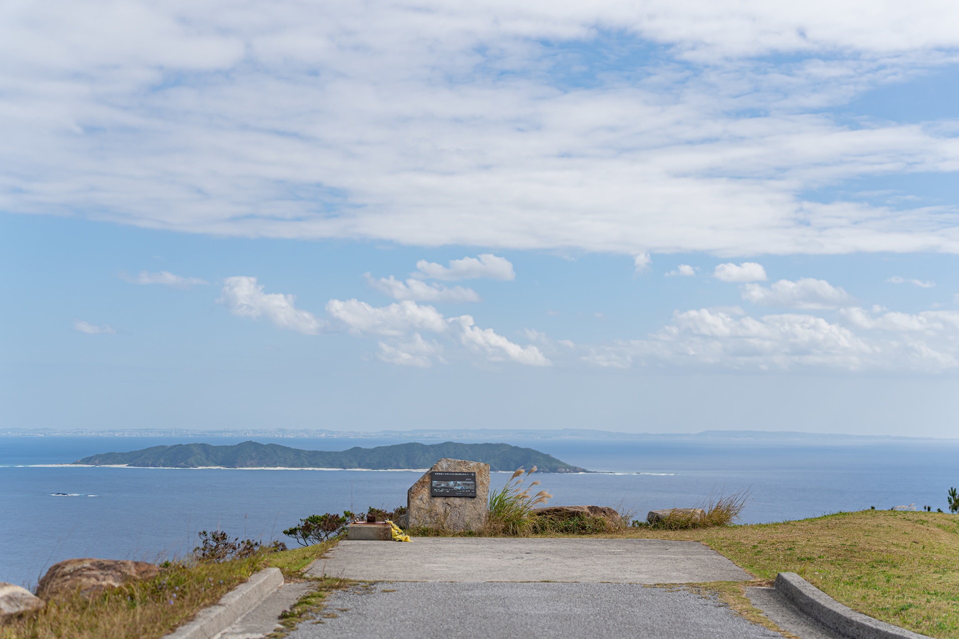 그들에게 자리를 양보해주고 찾은 곳은 반대편의 히가시 전망대(동 전망대) 이 두 전망대는 국립 오키나와 청소년 교류의 집 시설 안에 있으며 이곳까지 길은 잘 포장되어 있습니다. 동쪽 전망대에서는 바로 앞의 마에지마 섬과 멀리 오키나와 본토의 풍경을 감상할 수 있습니다. 수평선을 선명하게 바라볼 수 있는 것도 이 전망대의 매력이라고 합니다.