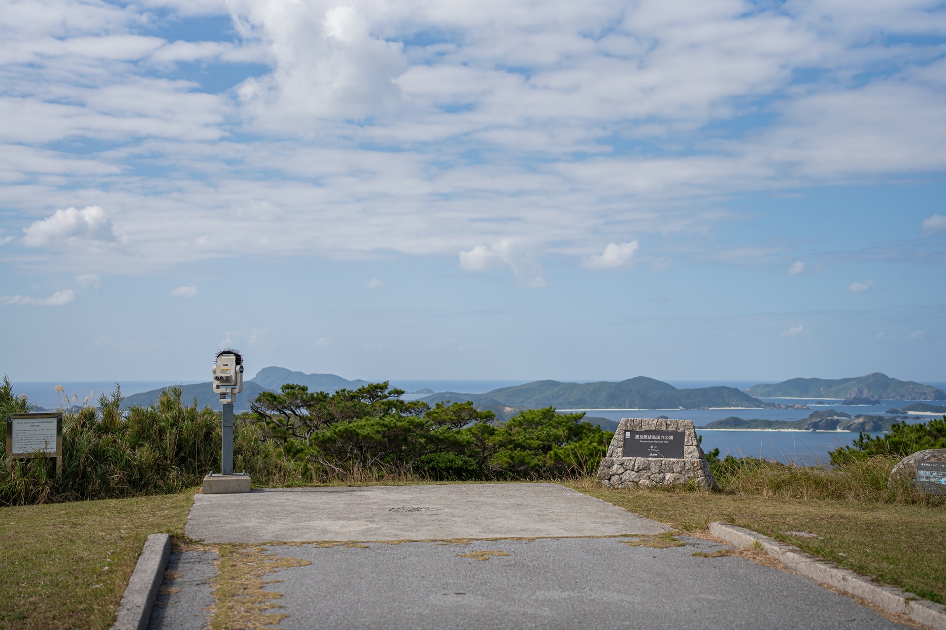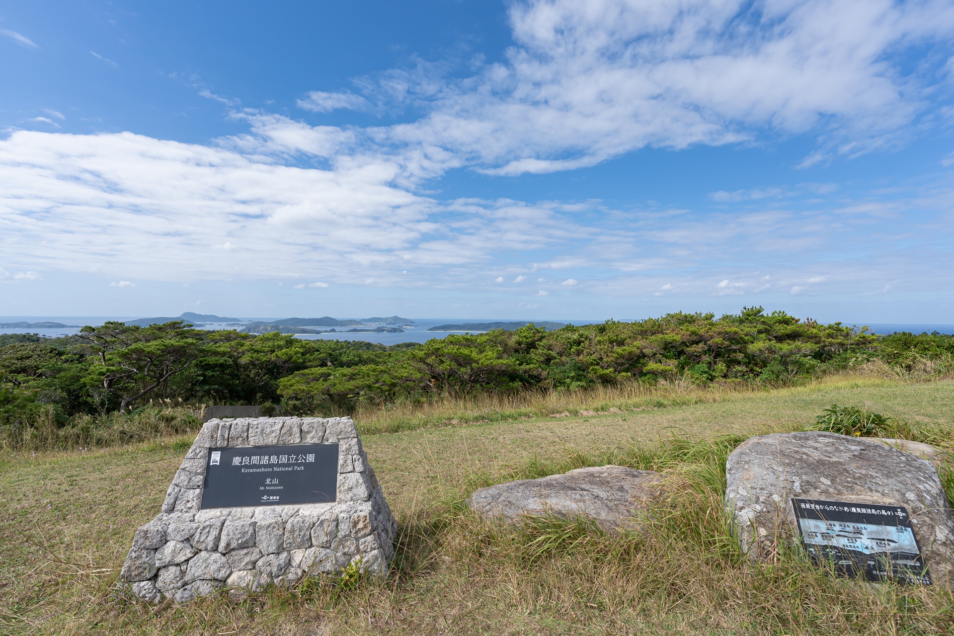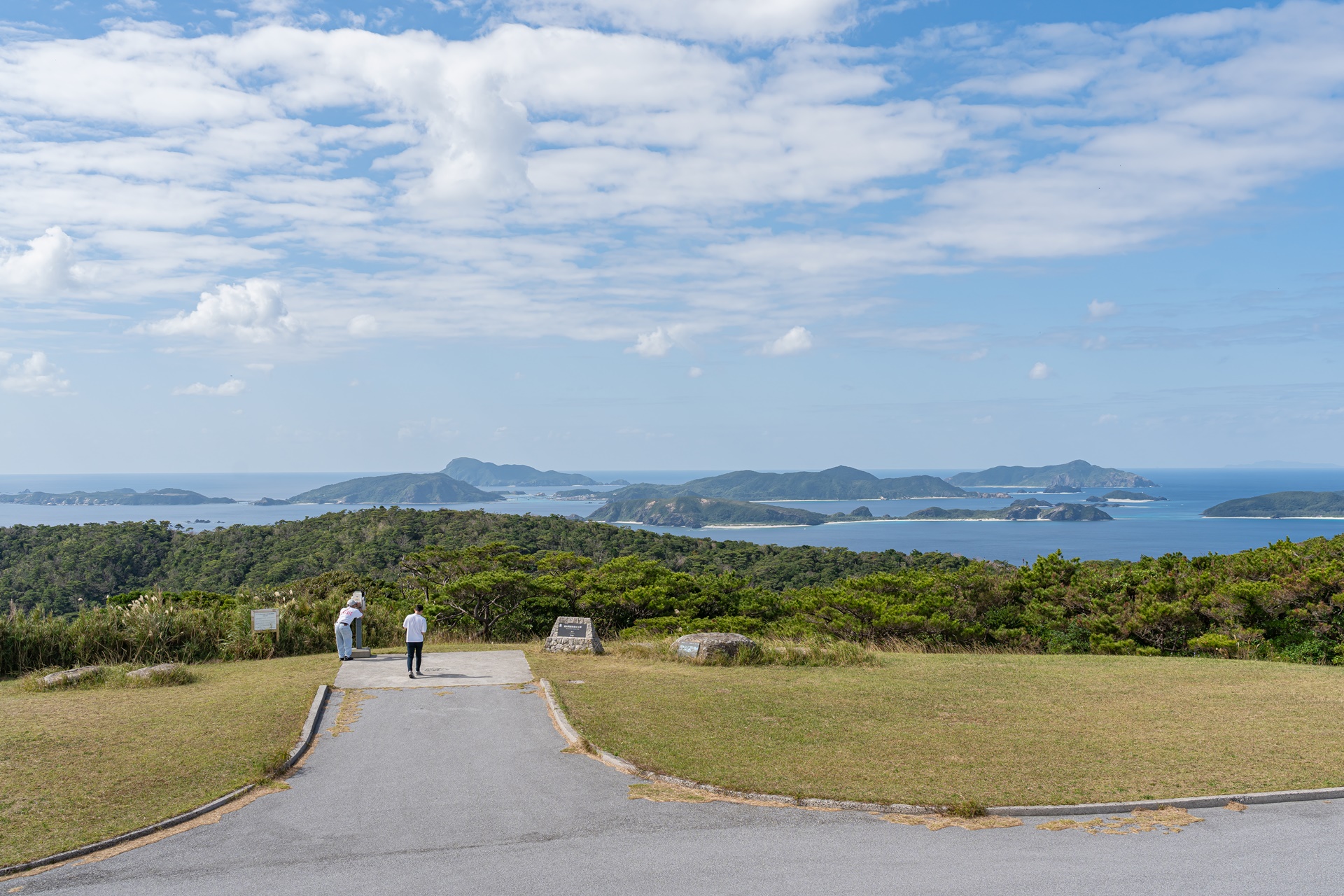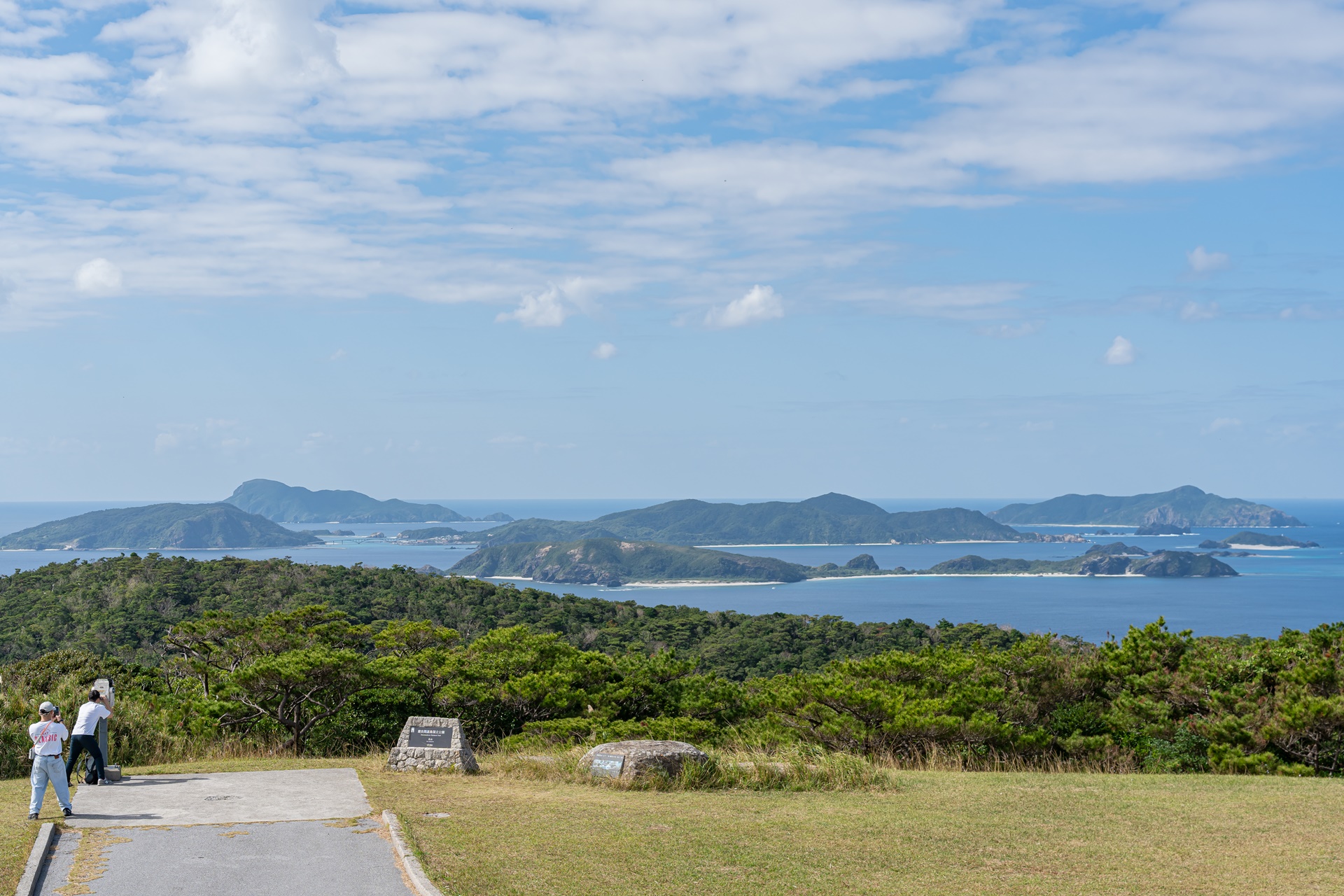 가장 먼저 찾은 곳은 도카시키 섬의 북쪽 아카마산(赤間山)의 두 전망대 입니다, 전망대는 서쪽, 동쪽으로 나뉘어 있으며 각각 다른 풍경을 감상할 수 있습니다. 아카마산은 도카시키 섬에서 가장 높은 곳이기 때문에 전망대의 경치면 아름다우며 게라마 제도의 멋진 섬들을 볼 수 있으며 날씨가 좋으면 오키나와 본섬, 이에섬의 닷츄까지 볼 수 있습니다.