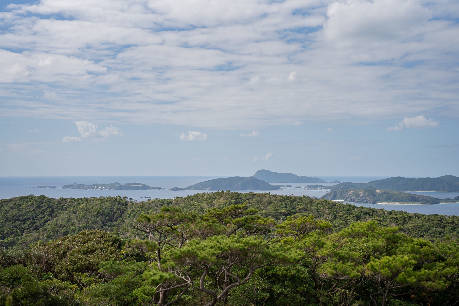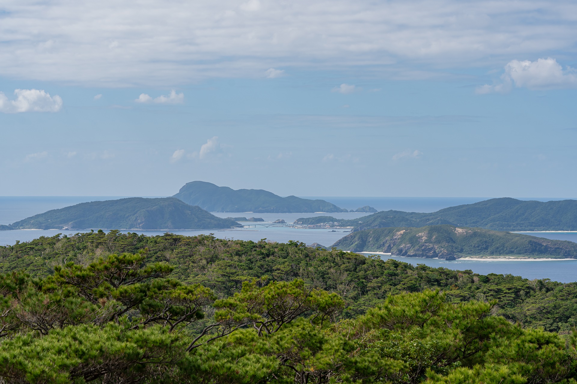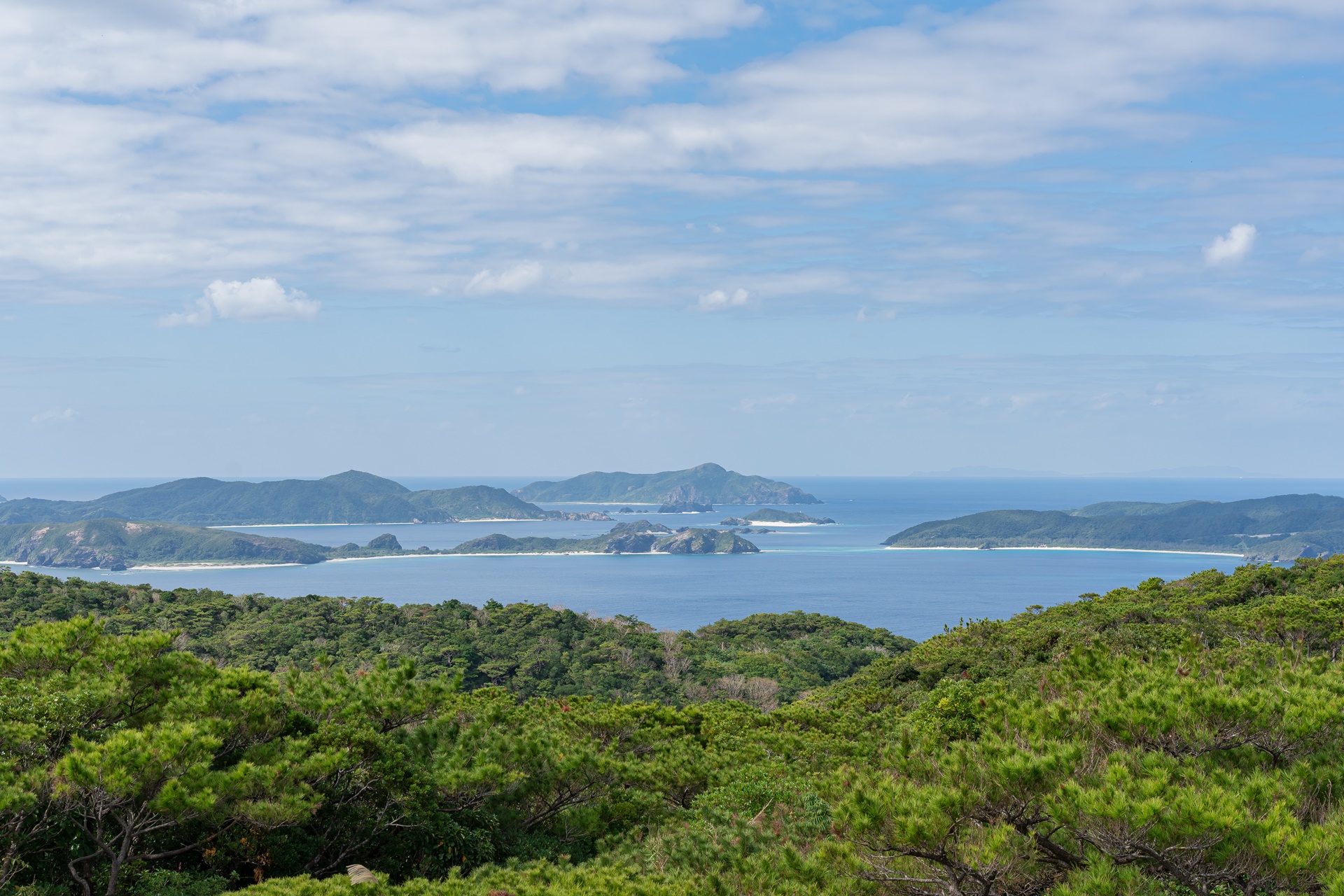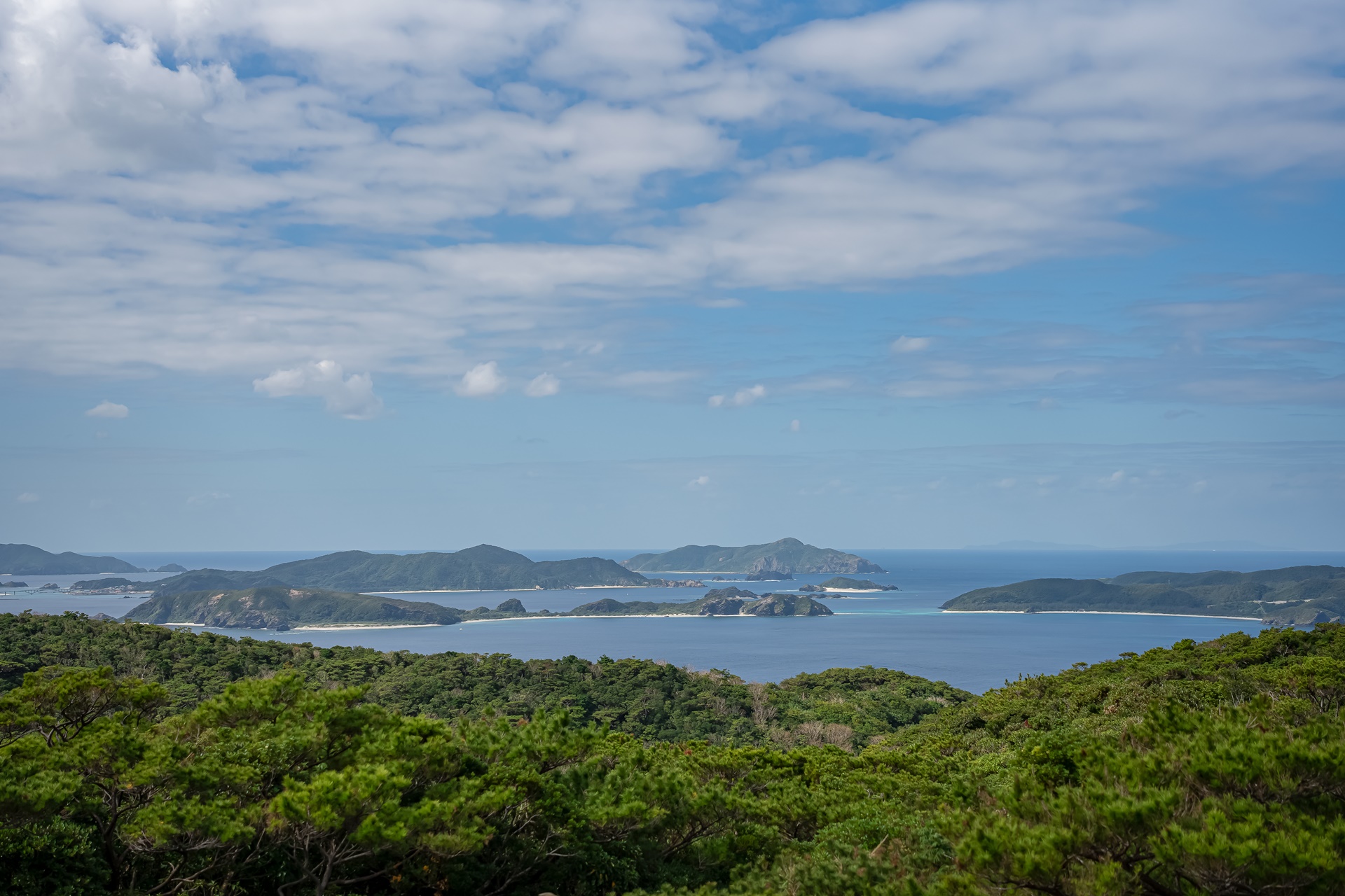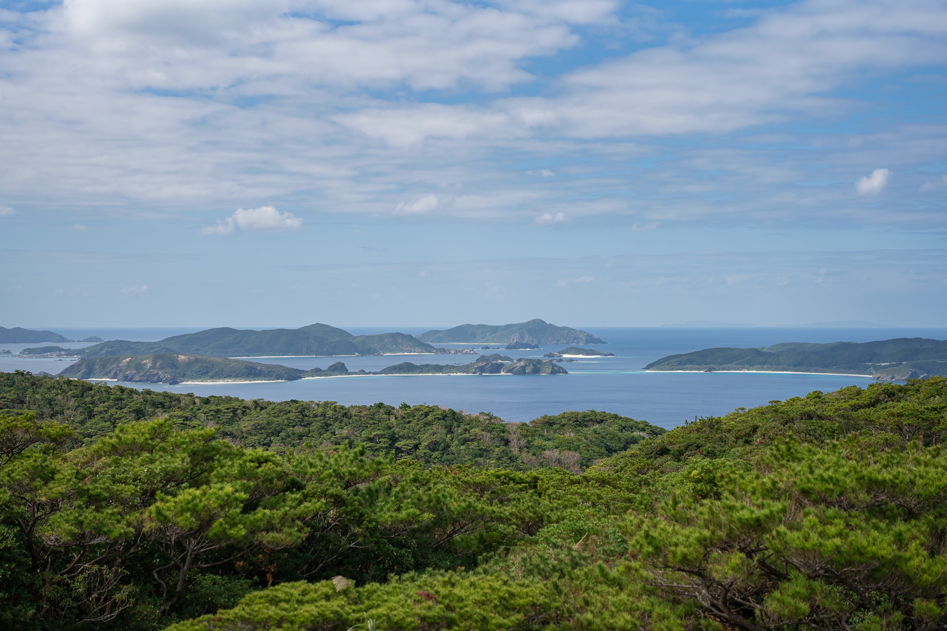 서쪽 전망대에서 보이는 게라마 제도의 섬들입니다. 관광지로 유명한 자마미 섬, 아카 섬도 이곳에서 보입니다.