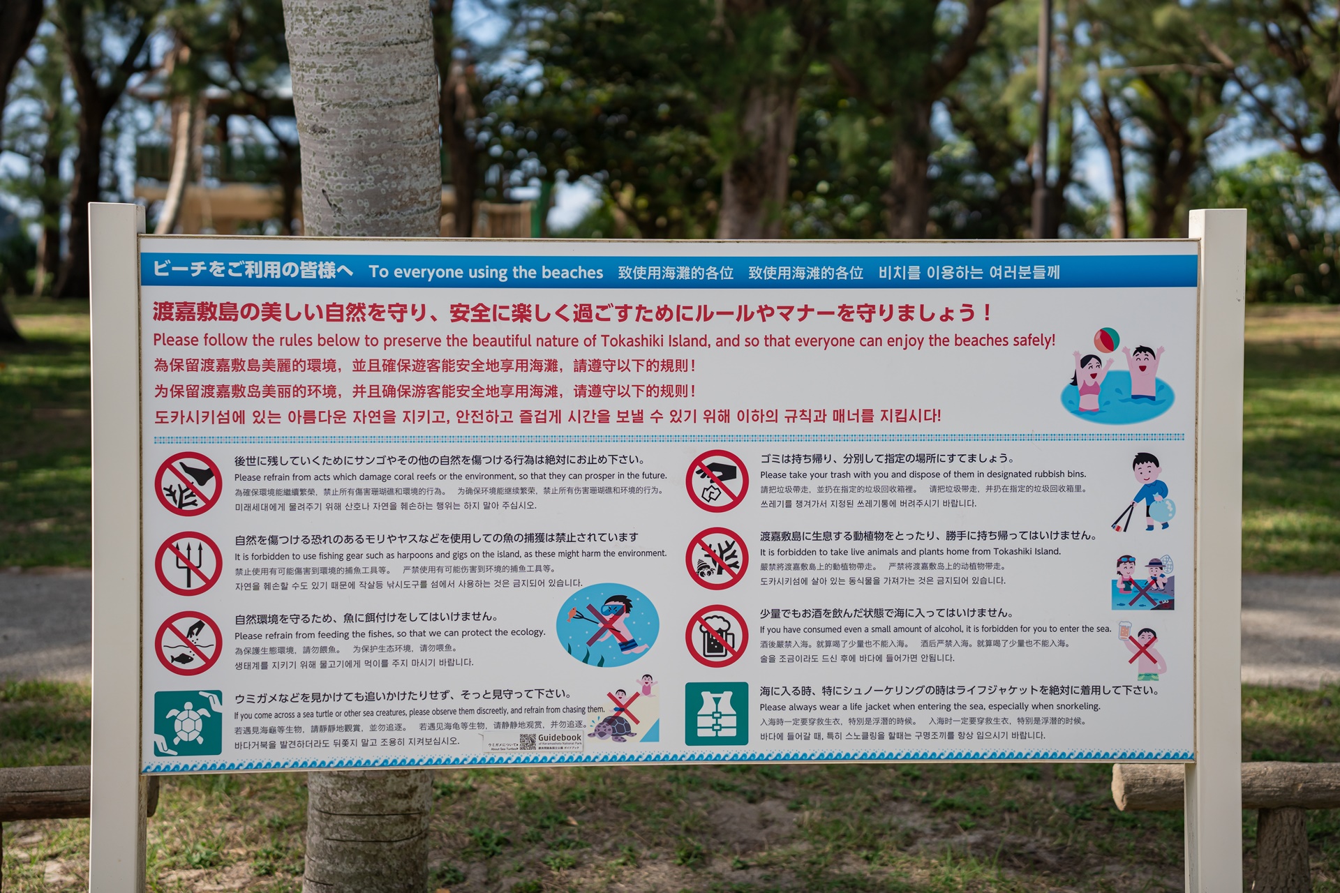 도카시키 섬에 있는 아름다운 자연을 지키고, 안전하고 즐겁게 시간을 보낼 수 있기 위해 이하의 규칙과 매너를 지킵시다.