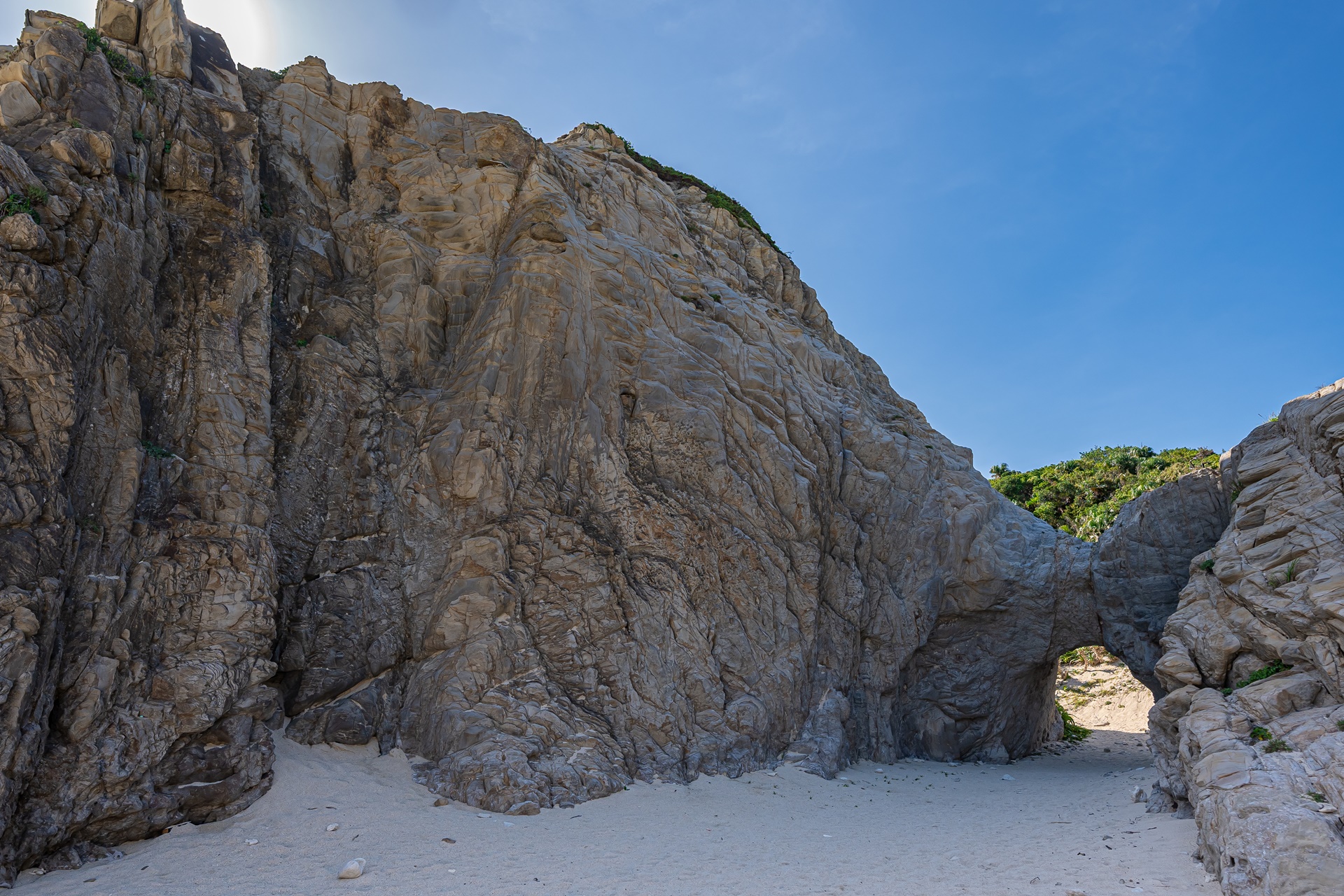 구반다키 전망대에서 아하렌 비치로 이어지는 통로에는 바위가 만든 작은 터널이 있습니다.