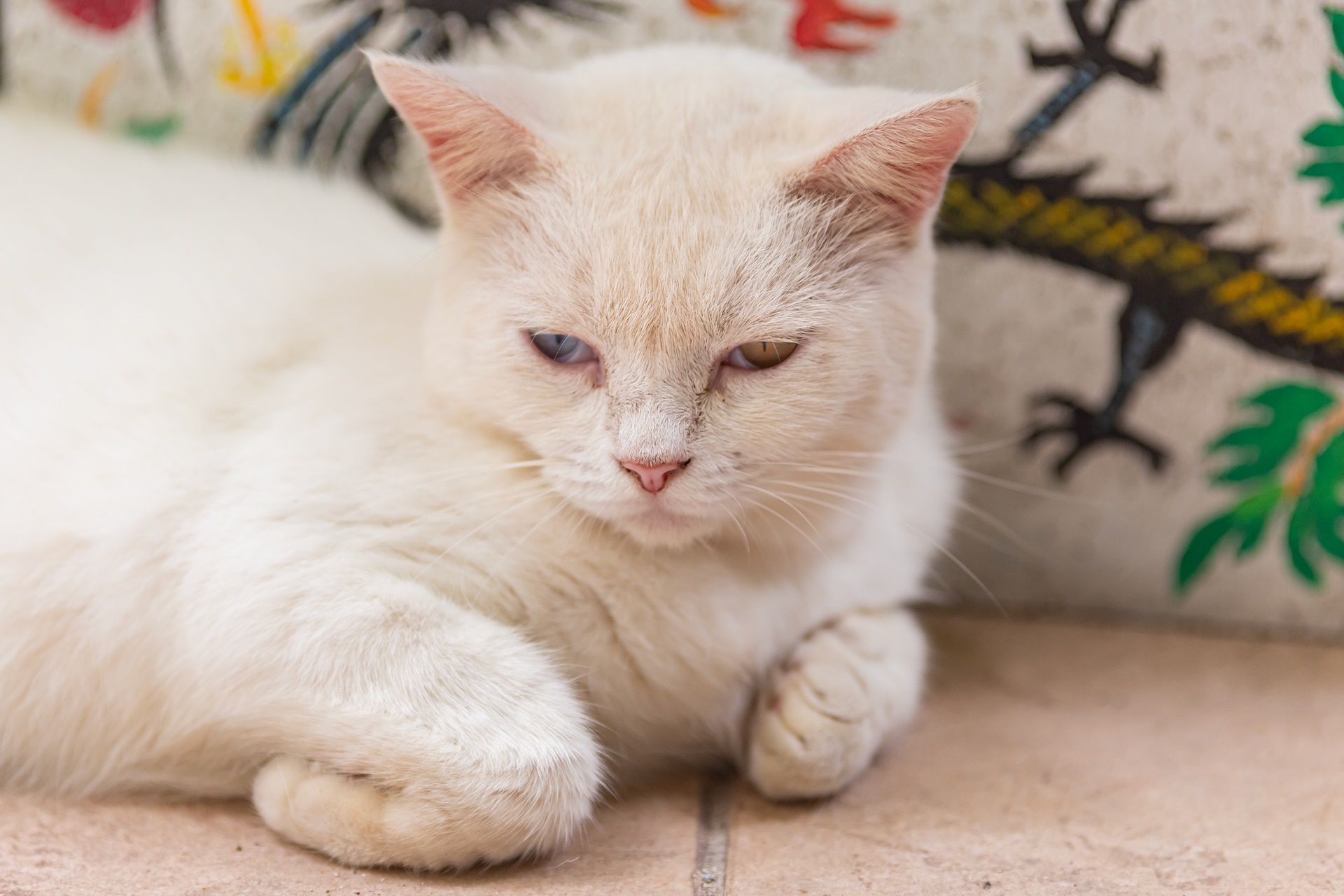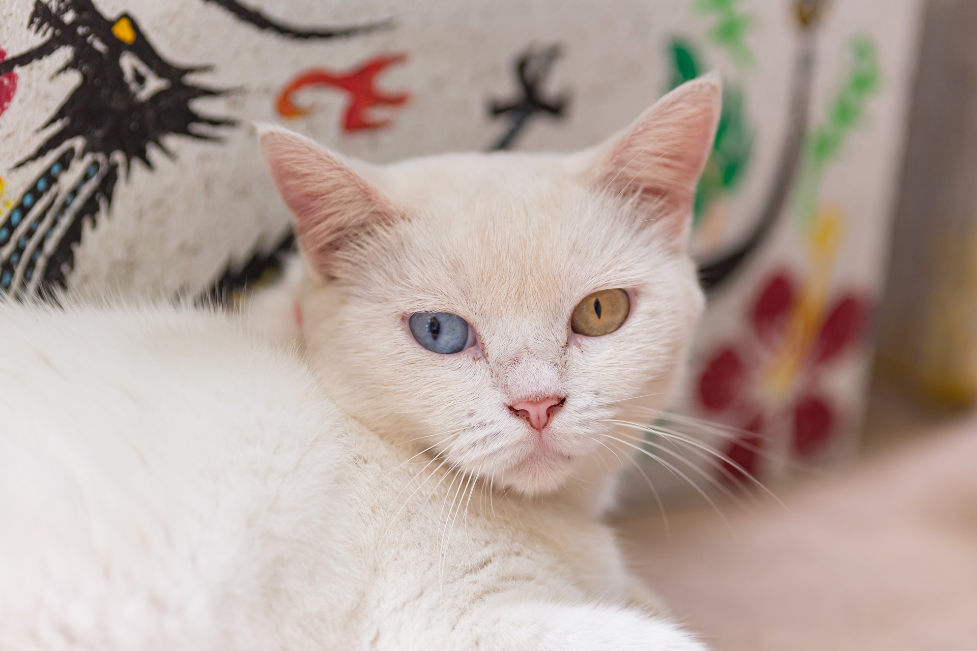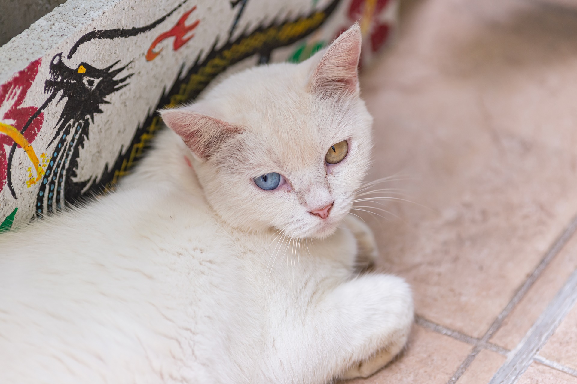 하얀 오드아이 고양이가 힐끔힐끔 처다보며 유혹합니다.