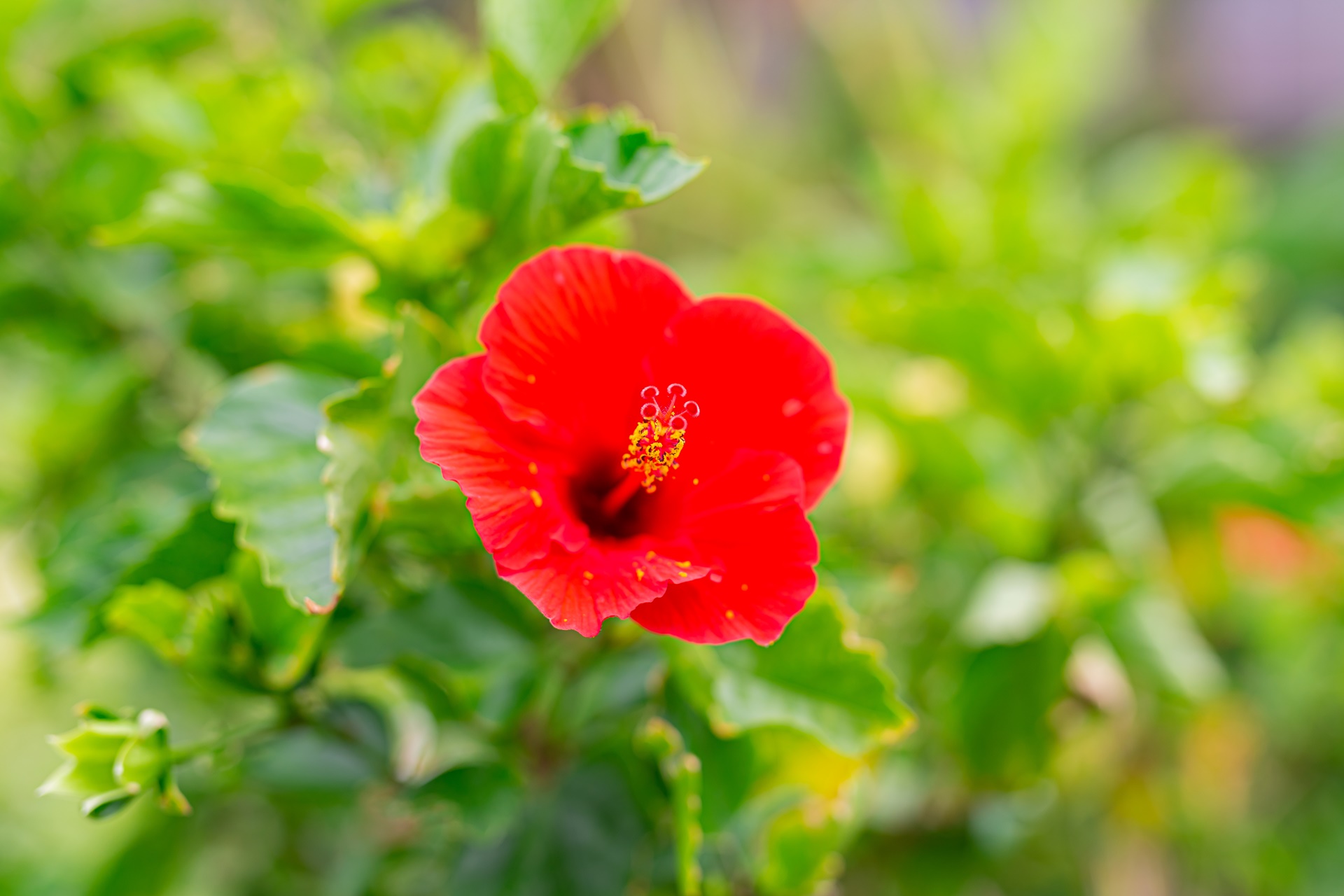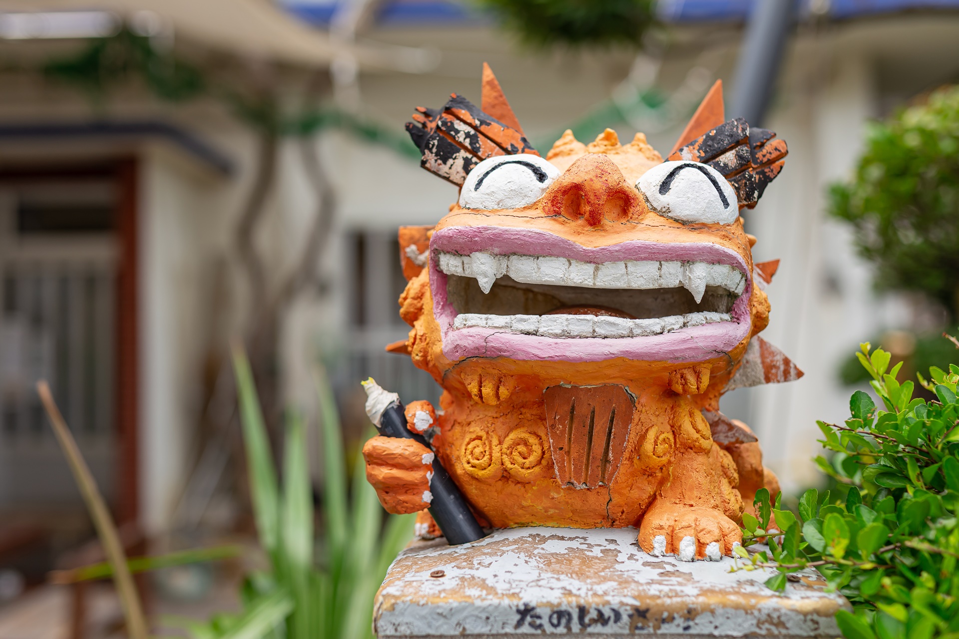 히비스커스 꽃과 오키나와의 상징 시사 조각
