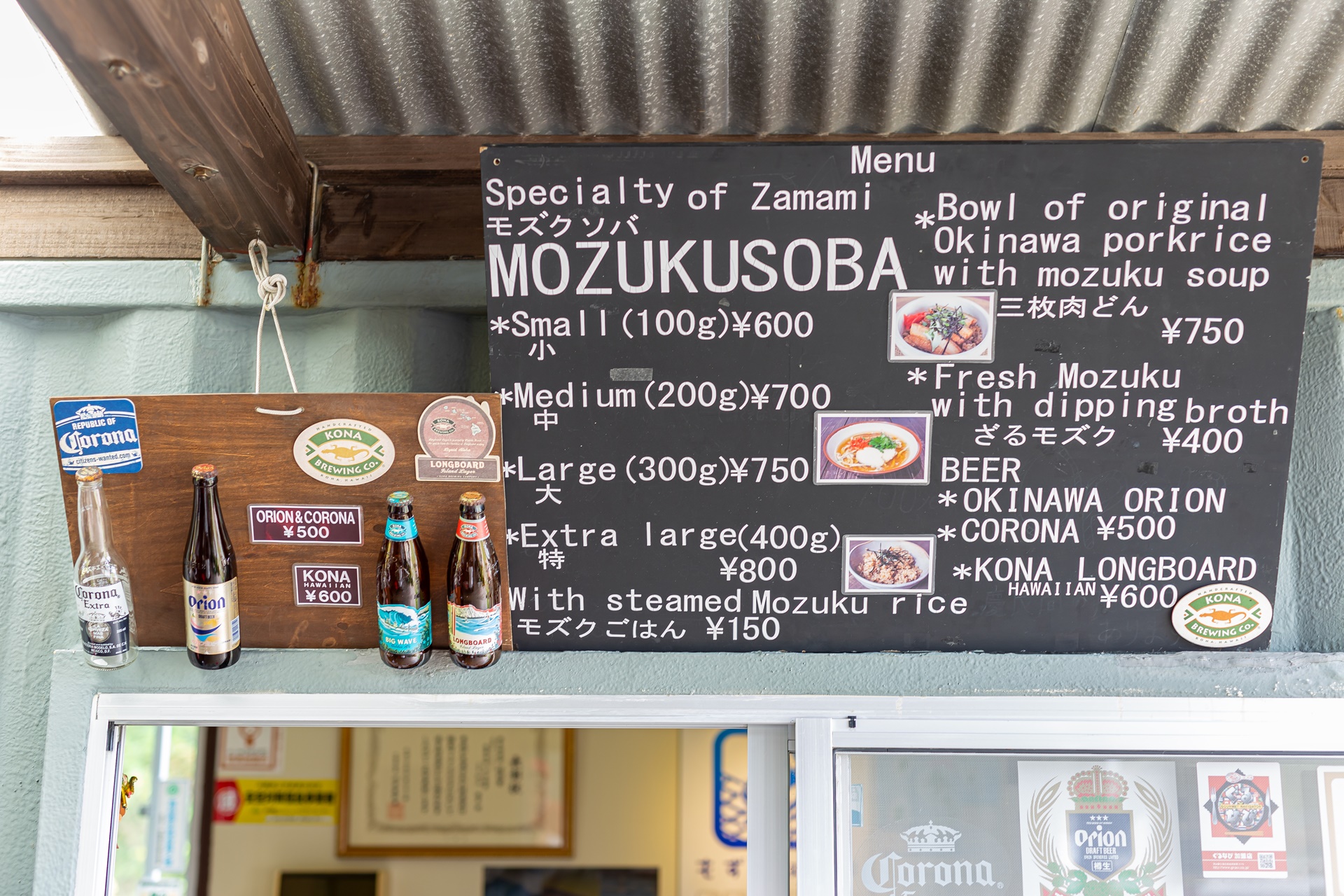 자마미 섬의 한 식당에서 오키나와의 명물인 해조류 모즈쿠(もずく, 큰실말) 가 들어간 소바가 있어서 먹어보았습니다.