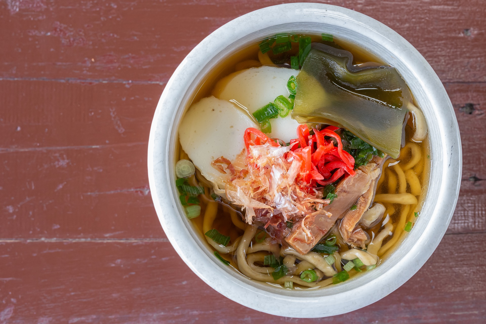 따뜻한 오키나와 소바 풍의 모즈쿠 소바와
