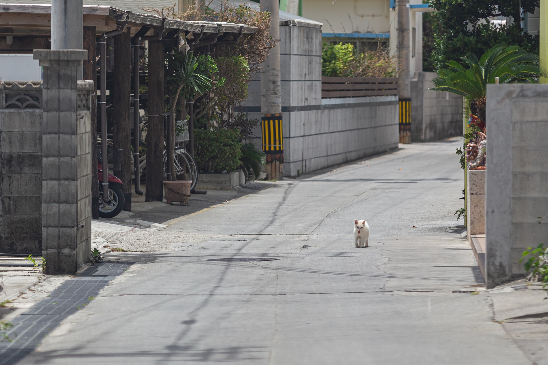 뜨거운 햇살의 오키나와에서는 자동차 아래나 지붕 아래 그늘을 찾아보면 고양이를 만날 수 있는 확률이 높아집니다.