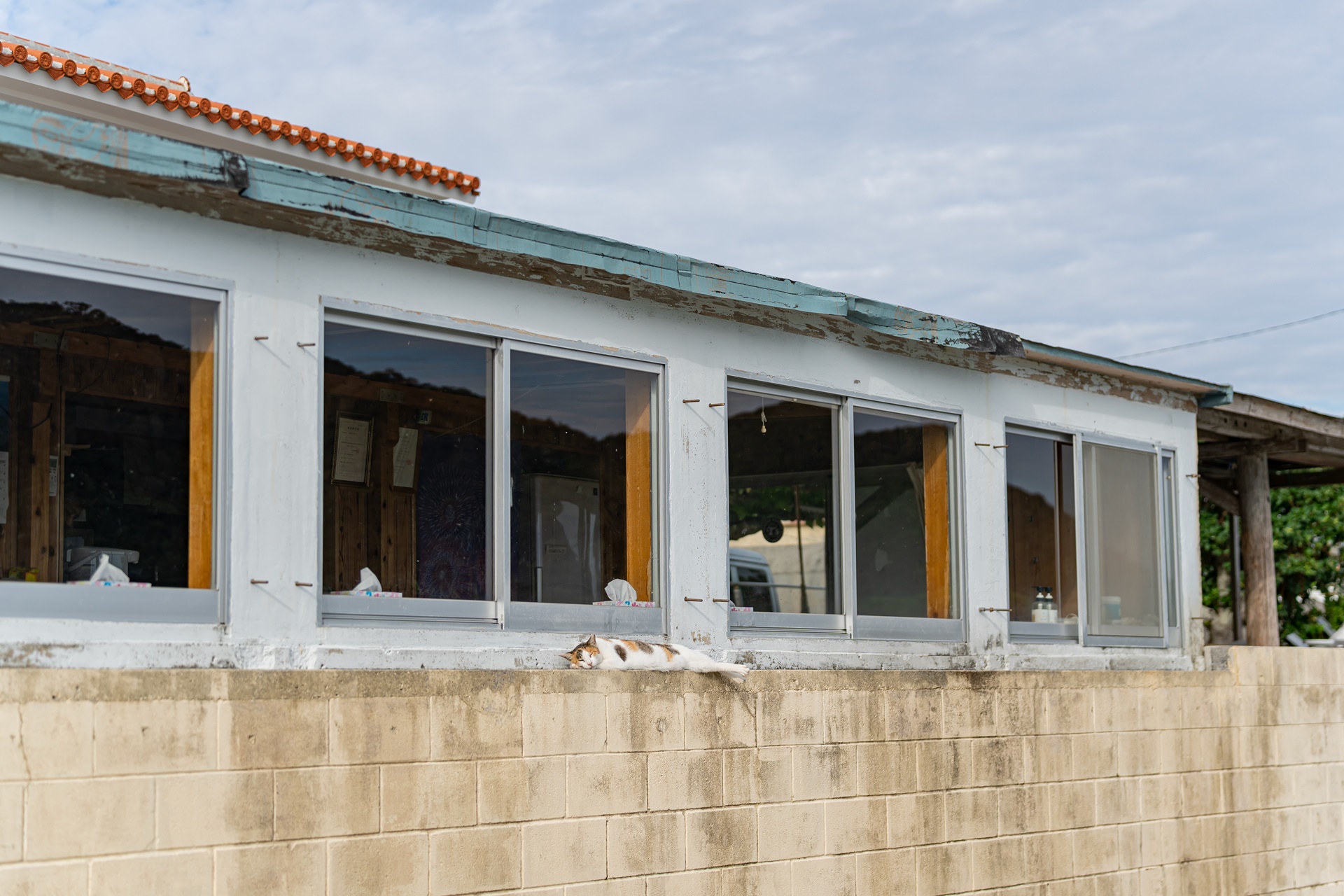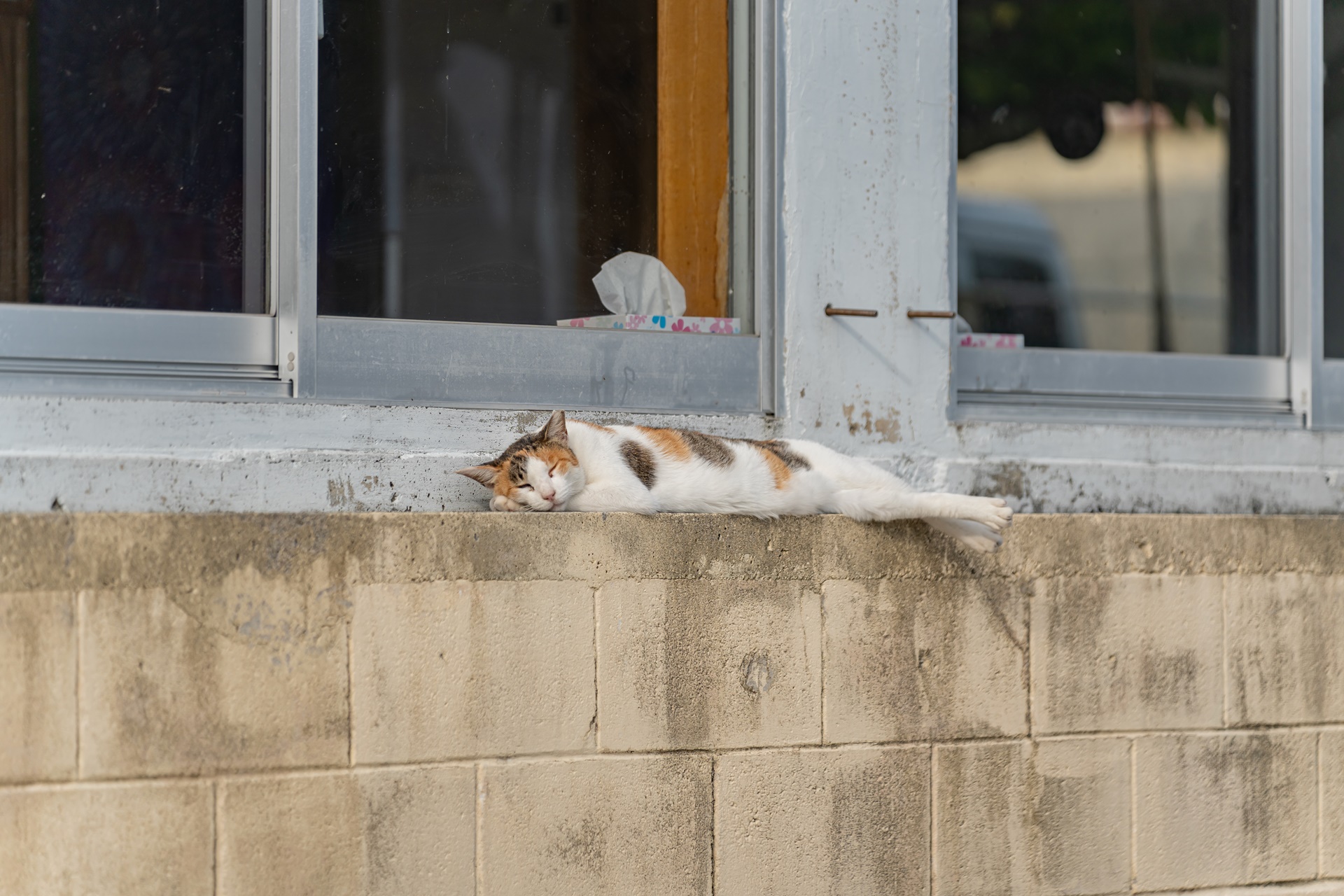 아카 항구 마을의 여유로운 고양이들