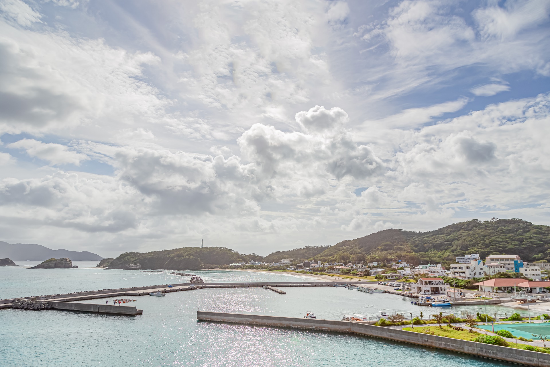 아카 항 주변에는 마을이 있으며 아카 항 주변 바다도 멋진 풍경을 자랑합니다.